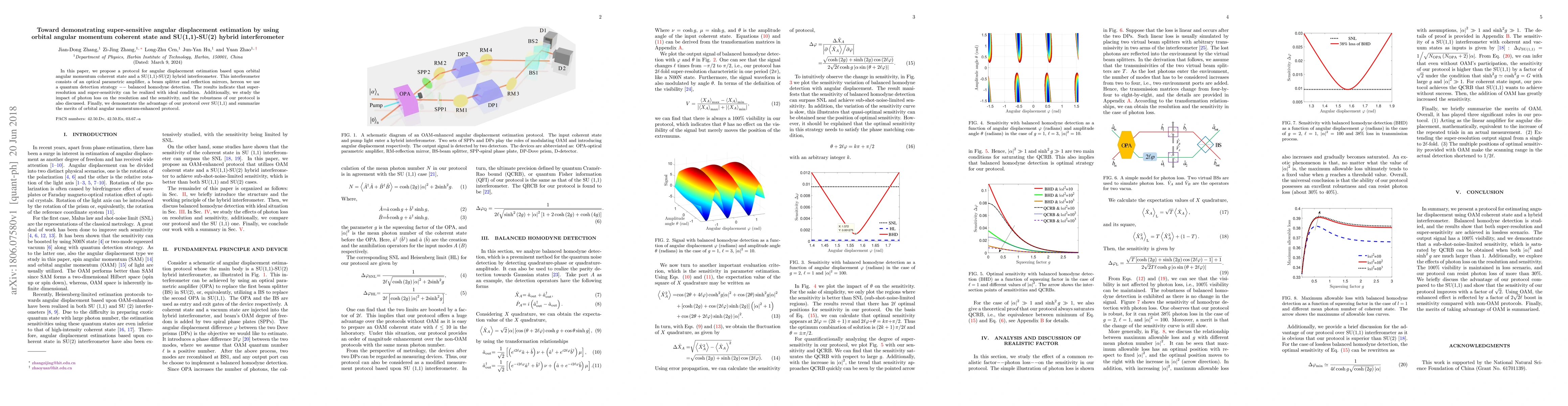 This paper proposes a super-sensitive angular displacement estimation protocol using an orbital angular momentum coherent state and a SU(1,1)-SU(2) hybrid interferometer, achieving super-resolution and super-sensitivity under ideal conditions. The study also examines the effects of photon loss and demonstrates the robustness and superiority of the proposed protocol over traditional SU(1,1) methods.