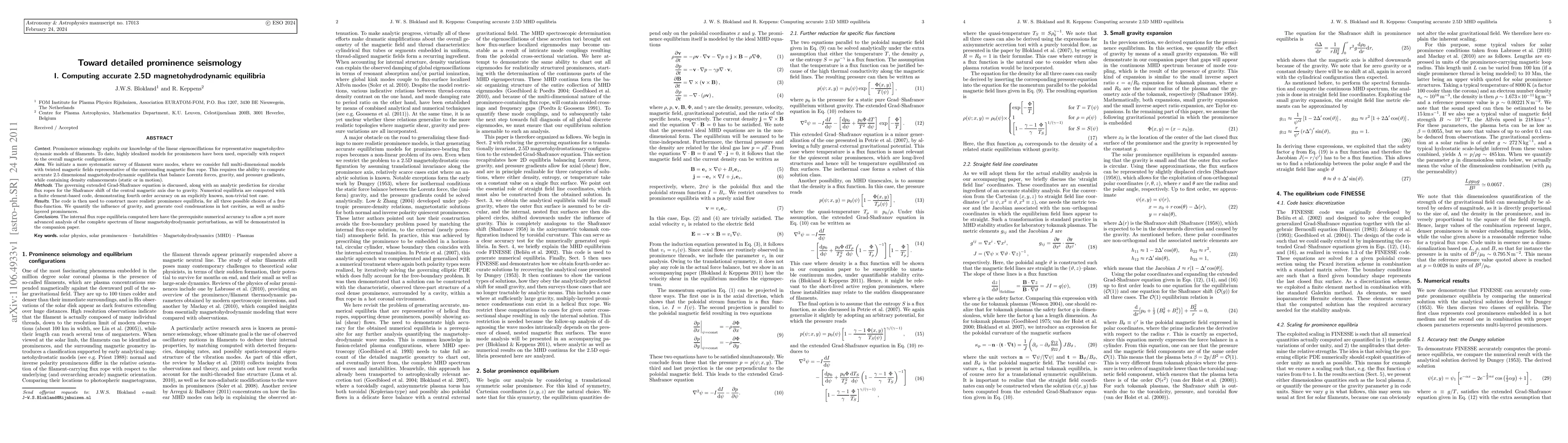 Context. Prominence seismology exploits our knowledge of the linear eigenoscillations for representative magnetohydro- dynamic models of filaments. To date, highly idealized models for prominences have been used, especially with respect to the overall magnetic configurations. Aims. We initiate a more systematic survey of filament wave modes, where we consider full multi-dimensional models with twisted magnetic fields representative of the surrounding magnetic flux rope. This requires the ability to compute accurate 2.5 dimensional magnetohydrodynamic equilibria that balance Lorentz forces, gravity, and pressure gradients, while containing density enhancements (static or in motion). Methods. The governing extended Grad-Shafranov equation is discussed, along with an analytic prediction for circular flux ropes for the Shafranov shift of the central magnetic axis due to gravity. Numerical equilibria are computed with a finite element-based code, demonstrating fourth order accuracy on an explicitly known, non-trivial test case. Results. The code is then used to construct more realistic prominence equilibria, for all three possible choices of a free flux-function. We quantify the influence of gravity, and generate cool condensations in hot cavities, as well as multi- layered prominences. Conclusions. The internal flux rope equilibria computed here have the prerequisite numerical accuracy to allow a yet more advanced analysis of the complete spectrum of linear magnetohydrodynamic perturbations, as will be demonstrated in the companion paper.