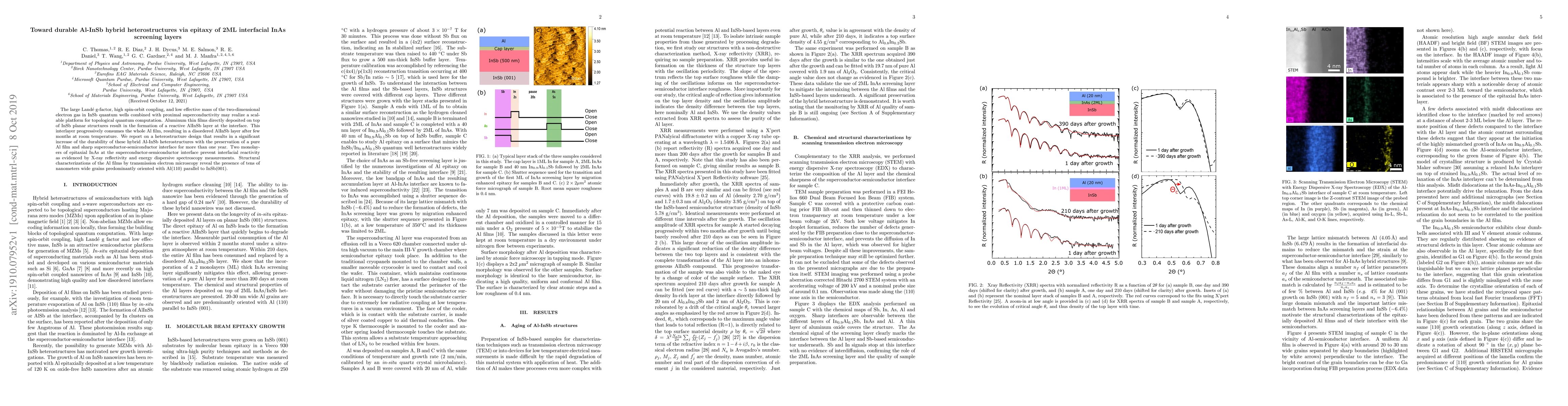 The large Land\'{e} g-factor, high spin-orbit coupling, and low effective mass of the two-dimensional electron gas in InSb quantum wells combined with proximal superconductivity may realize a scalable platform for topological quantum computation. Aluminum thin films directly deposited on top of InSb planar structures result in the formation of a reactive AlInSb layer at the interface. This interlayer progressively consumes the whole Al film, resulting in a disordered AlInSb layer after few months at room temperature. We report on a heterostructure design that results in a significant increase of the durability of these hybrid Al-InSb heterostructures with the preservation of a pure Al film and sharp superconductor-semiconductor interface for more than one year. Two monolayers of epitaxial InAs at the superconductor-semiconductor interface prevent interfacial reactivity as evidenced by X-ray reflectivity and energy dispersive spectroscopy measurements. Structural characterizations of the Al films by transmission electron microscopy reveal the presence of tens of nanometers wide grains predominantly oriented with Al(110) parallel to InSb(001).