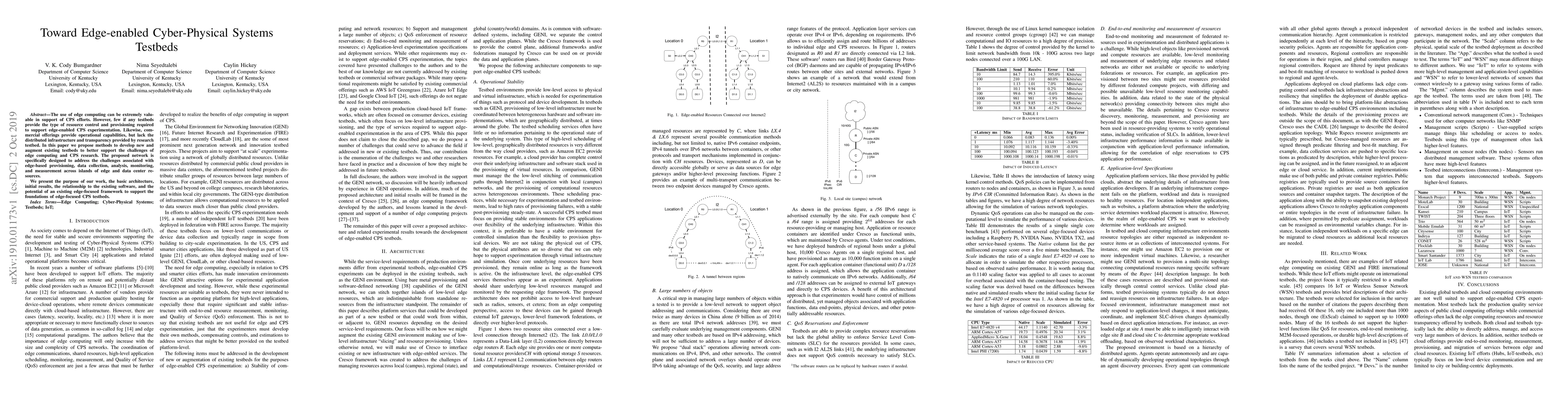 The use of edge computing can be extremely valuable in support of CPS efforts. However, few if any testbeds provide the type of resource control and provisioning required to support edge-enabled CPS experimentation. Likewise, commercial offerings provide operational capabilities, but lack the distributed infrastructure and transparency provided by research testbed. In this paper we propose methods to develop new and augment existing testbeds to better support the challenges of edge computing and CPS research. The proposed network is specifically designed to address the challenges associated with edge-based provisioning, data collection, analysis, monitoring, and measurement across islands of edge and data center resources. We present the purpose of our work, the basic architecture, initial results, the relationship to the existing software, and the potential of an existing edge-focused framework to support the foundations of edge-focused CPS testbeds.