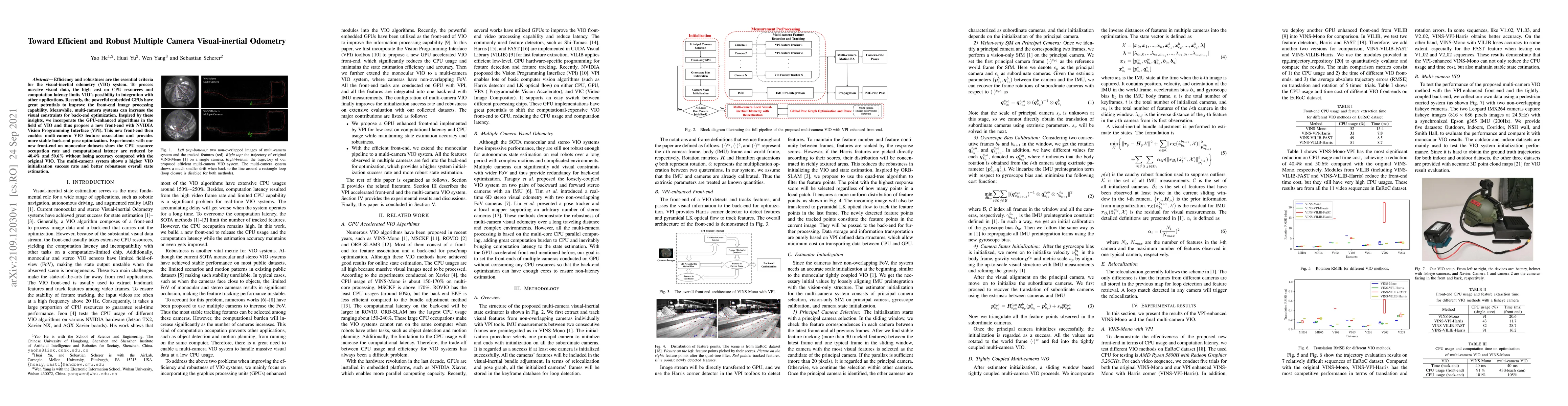 Efficiency and robustness are the essential criteria for the visual-inertial odometry (VIO) system. To process massive visual data, the high cost on CPU resources and computation latency limits VIO's possibility in integration with other applications. Recently, the powerful embedded GPUs have great potentials to improve the front-end image processing capability. Meanwhile, multi-camera systems can increase the visual constraints for back-end optimization. Inspired by these insights, we incorporate the GPU-enhanced algorithms in the field of VIO and thus propose a new front-end with NVIDIA Vision Programming Interface (VPI). This new front-end then enables multi-camera VIO feature association and provides more stable back-end pose optimization. Experiments with our new front-end on monocular datasets show the CPU resource occupation rate and computational latency are reduced by 40.4% and 50.6% without losing accuracy compared with the original VIO. The multi-camera system shows a higher VIO initialization success rate and better robustness overall state estimation.