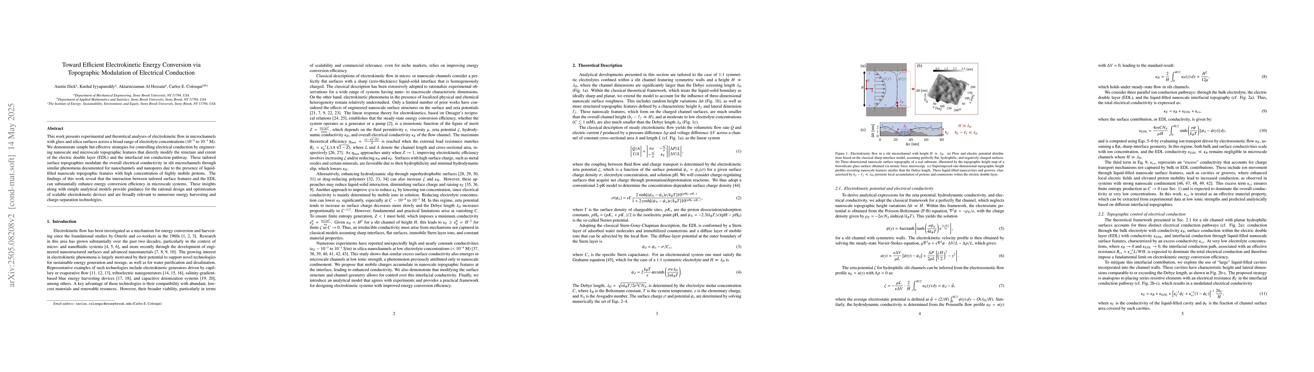 The paper presents strategies for controlling electrical conduction by engineering topographic features that directly modify the EDL and interfacial ion conduction pathway, thereby enhancing energy conversion efficiency.