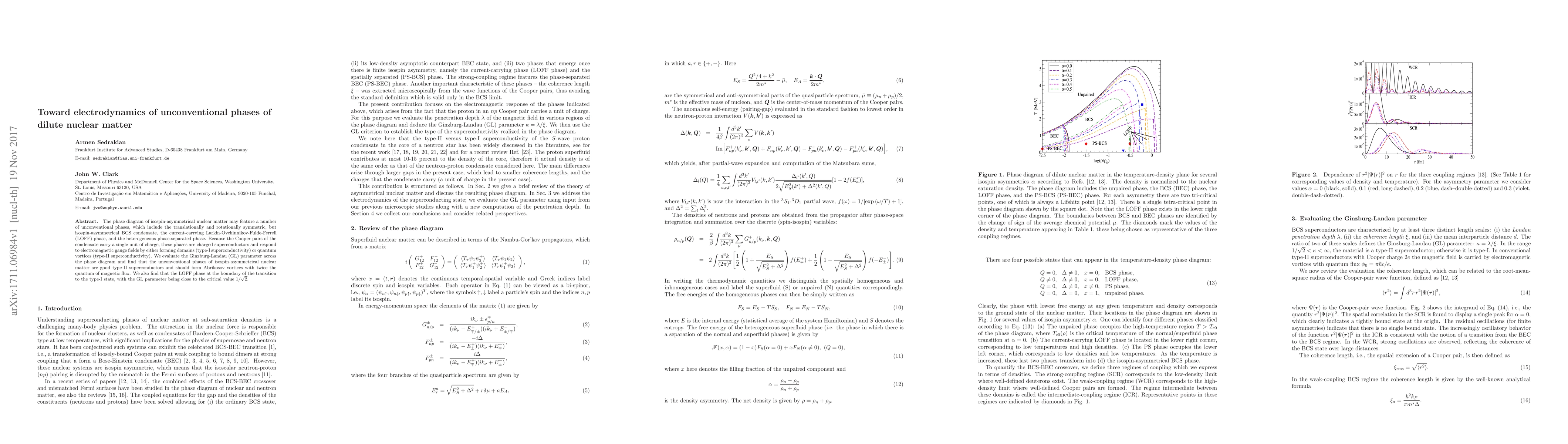 Research explores unconventional superconducting phases in dilute nuclear matter, finding they form Abrikosov vortices with twice the quantum of magnetic flux and exhibiting type-II superconductivity.