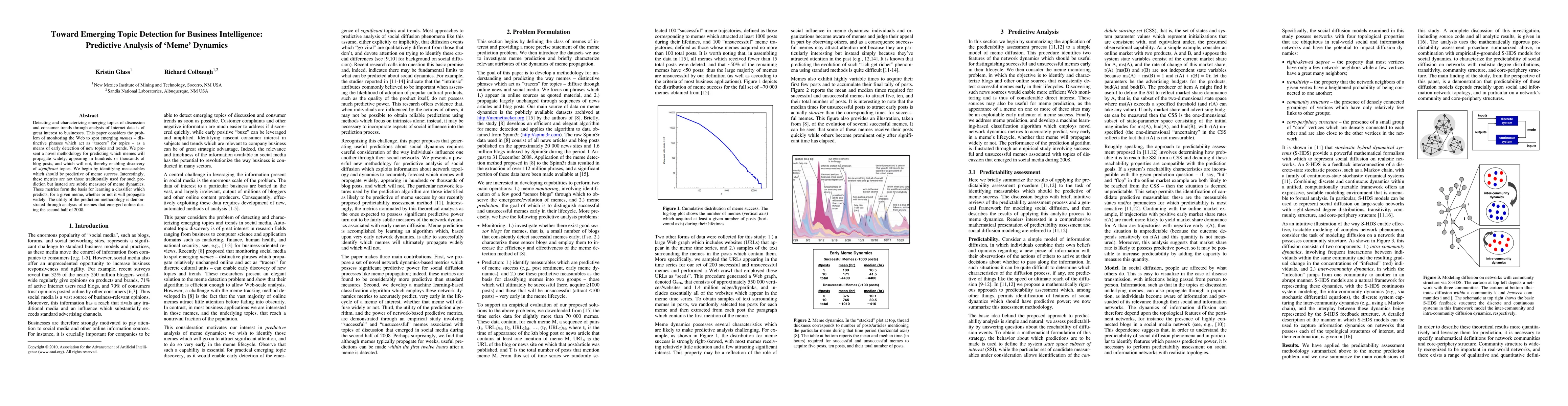 Detecting and characterizing emerging topics of discussion and consumer trends through analysis of Internet data is of great interest to businesses. This paper considers the problem of monitoring the Web to spot emerging memes - distinctive phrases which act as "tracers" for topics - as a means of early detection of new topics and trends. We present a novel methodology for predicting which memes will propagate widely, appearing in hundreds or thousands of blog posts, and which will not, thereby enabling discovery of significant topics. We begin by identifying measurables which should be predictive of meme success. Interestingly, these metrics are not those traditionally used for such prediction but instead are subtle measures of meme dynamics. These metrics form the basis for learning a classifier which predicts, for a given meme, whether or not it will propagate widely. The utility of the prediction methodology is demonstrated through analysis of memes that emerged online during the second half of 2008.