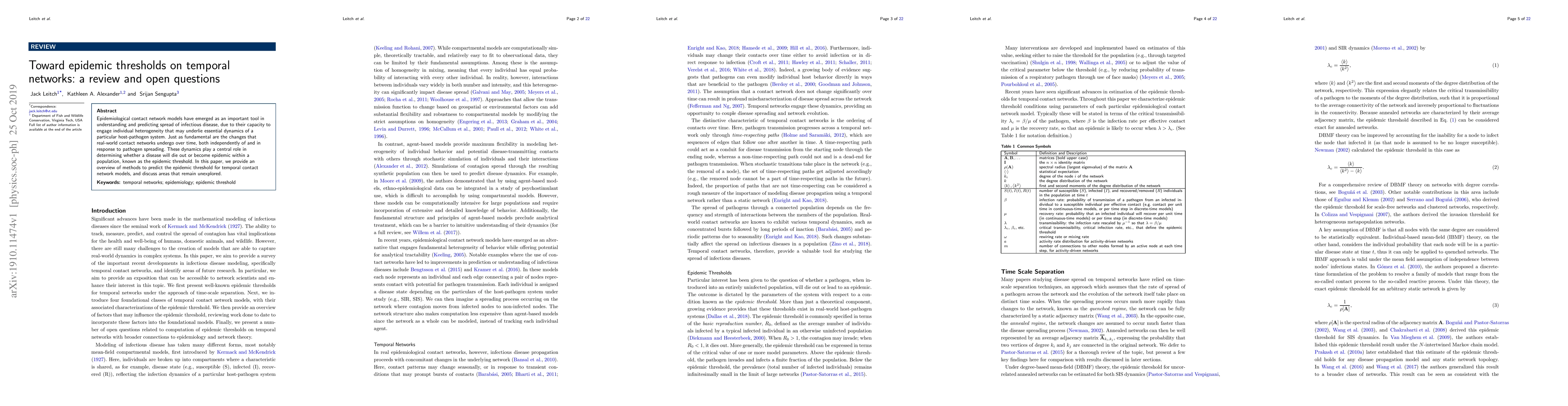 Epidemiological contact network models have emerged as an important tool in understanding and predicting the spread of infectious disease, due to their capacity to engage individual heterogeneity that may underlie essential dynamics of a particular host-pathogen system. Just as fundamental are the changes that real-world contact networks undergo over time, both independently of and in response to pathogen spreading. These dynamics play a central role in determining whether a disease will die out or become an epidemic within a population, known as the epidemic threshold. In this paper, we provide an overview of methods to predict the epidemic threshold for temporal contact network models, and discuss areas that remain unexplored.