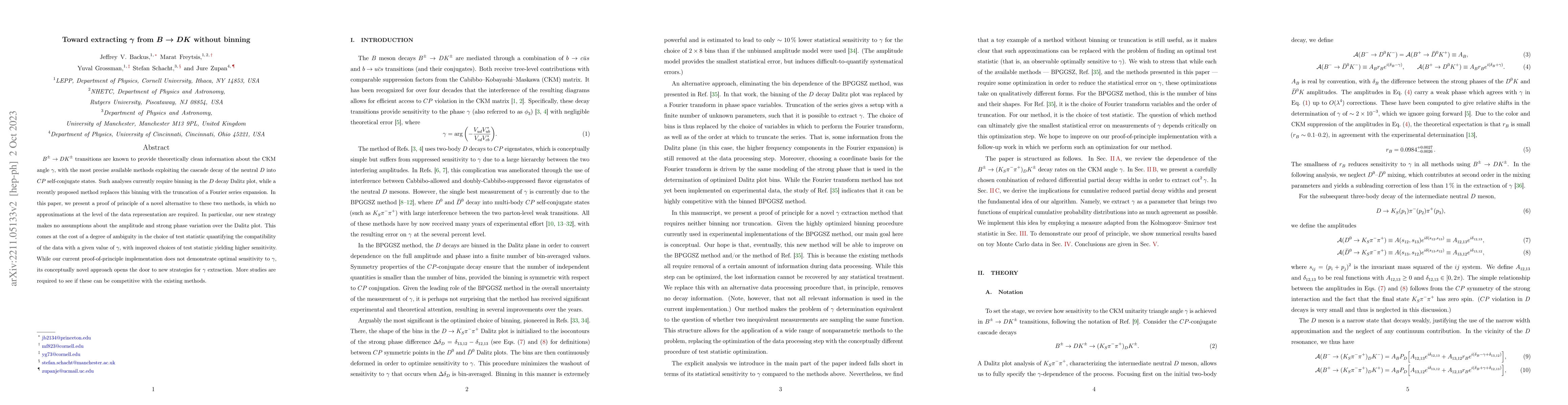This paper introduces a novel method for extracting the CKM angle $\gamma$ from $B^\pm \to DK^\pm$ transitions without relying on binning or Fourier series approximations, aiming for a more direct representation of data. While current results show potential, further studies are needed to determine if this approach can compete with existing precise methods.