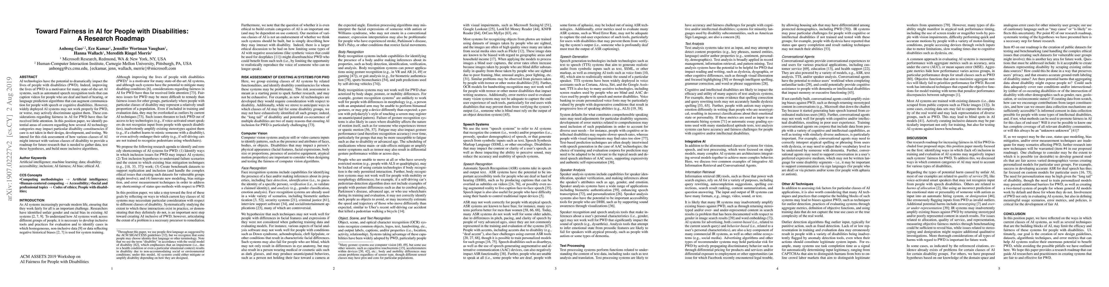 This paper outlines the potential risks of AI technologies discriminating against people with disabilities and proposes a research roadmap to address these issues, emphasizing the need for inclusive design, development, and testing of AI systems. It aims to guide future studies to build fairer and more accessible AI for diverse disability groups.