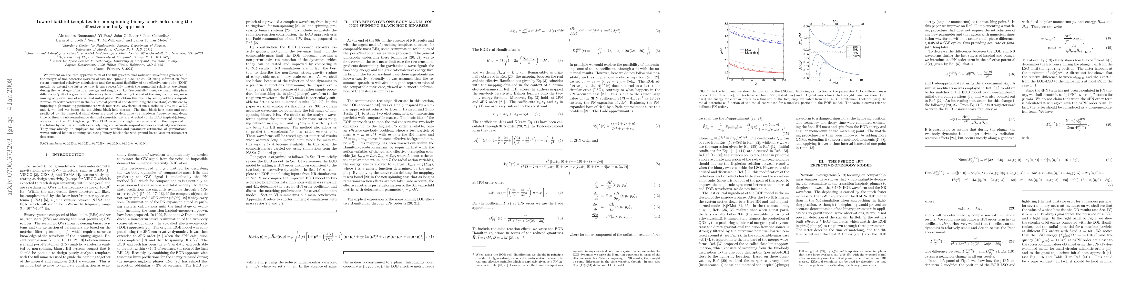 This paper presents an improved effective-one-body (EOB) model for accurately approximating gravitational waveforms from non-spinning binary black hole mergers, achieving phase differences < 8% with numerical relativity simulations. The model incorporates a 4-post-Newtonian correction and can be tested against long, accurate numerical simulations for future refinement.