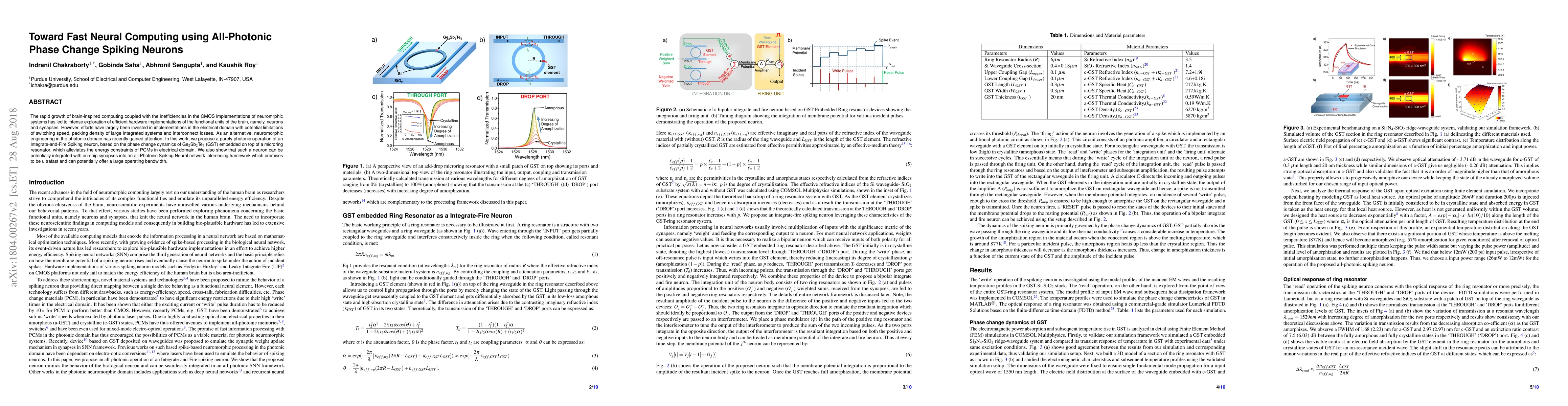 This paper proposes a photonic spiking neuron using phase change materials on a microring resonator to achieve fast, energy-efficient neuromorphic computing, potentially enabling ultrafast, large-bandwidth all-photonic neural networks. The approach aims to overcome the limitations of CMOS-based neuromorphic systems.