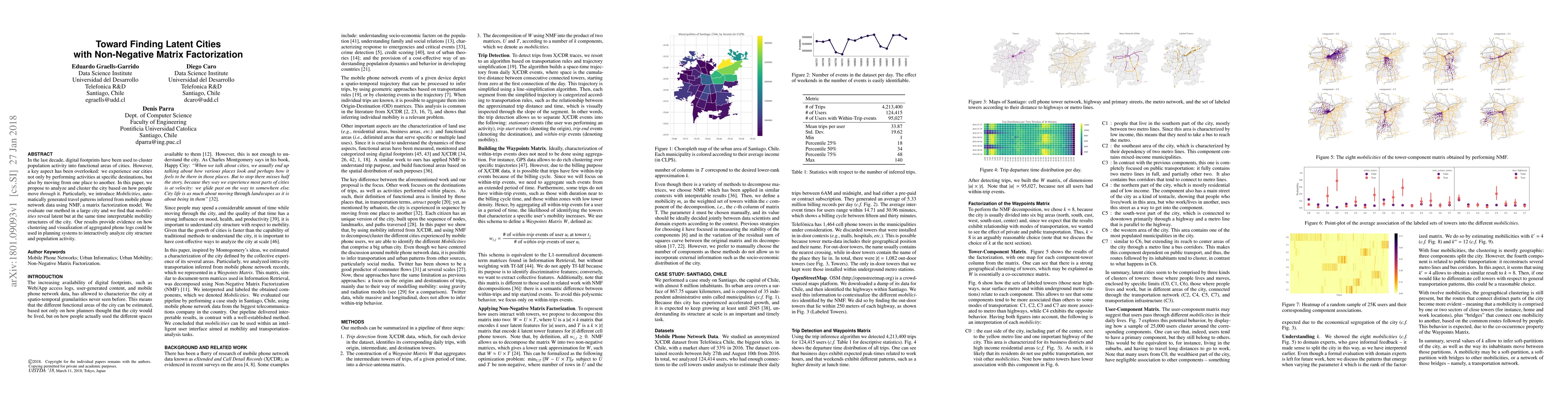 In the last decade, digital footprints have been used to cluster population activity into functional areas of cities. However, a key aspect has been overlooked: we experience our cities not only by performing activities at specific destinations, but also by moving from one place to another. In this paper, we propose to analyze and cluster the city based on how people move through it. Particularly, we introduce Mobilicities, automatically generated travel patterns inferred from mobile phone network data using NMF, a matrix factorization model. We evaluate our method in a large city and we find that mobilicities reveal latent but at the same time interpretable mobility structures of the city. Our results provide evidence on how clustering and visualization of aggregated phone logs could be used in planning systems to interactively analyze city structure and population activity.