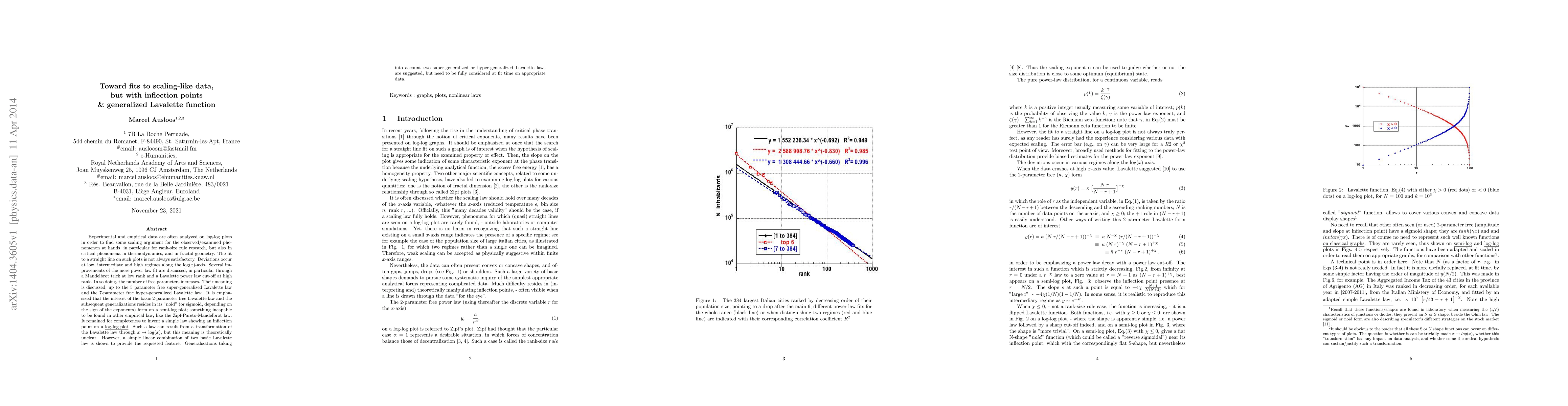 This paper discusses improvements to scaling-like data fits on log-log plots, particularly addressing deviations from straight line fits. It proposes generalized Lavalette functions with inflection points and multiple parameters to better fit empirical data, emphasizing their unique "noid" form on semi-log plots.