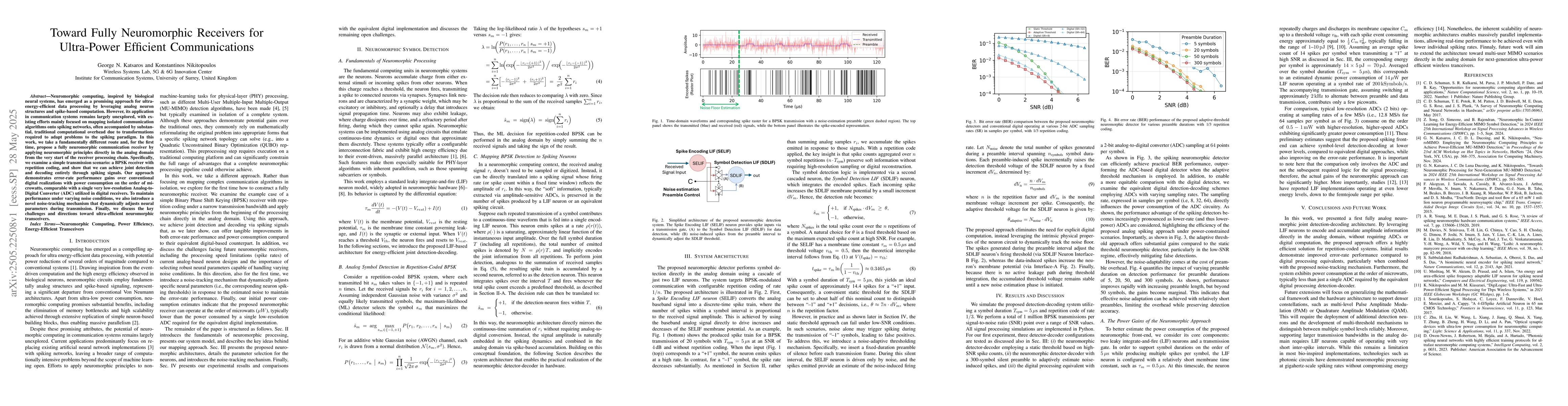 Researchers proposed a fully neuromorphic communication receiver that achieves ultra-energy efficiency and comparable performance to digital receivers, using spiking signals for joint detection and decoding, with the potential for dynamic noise tracking.