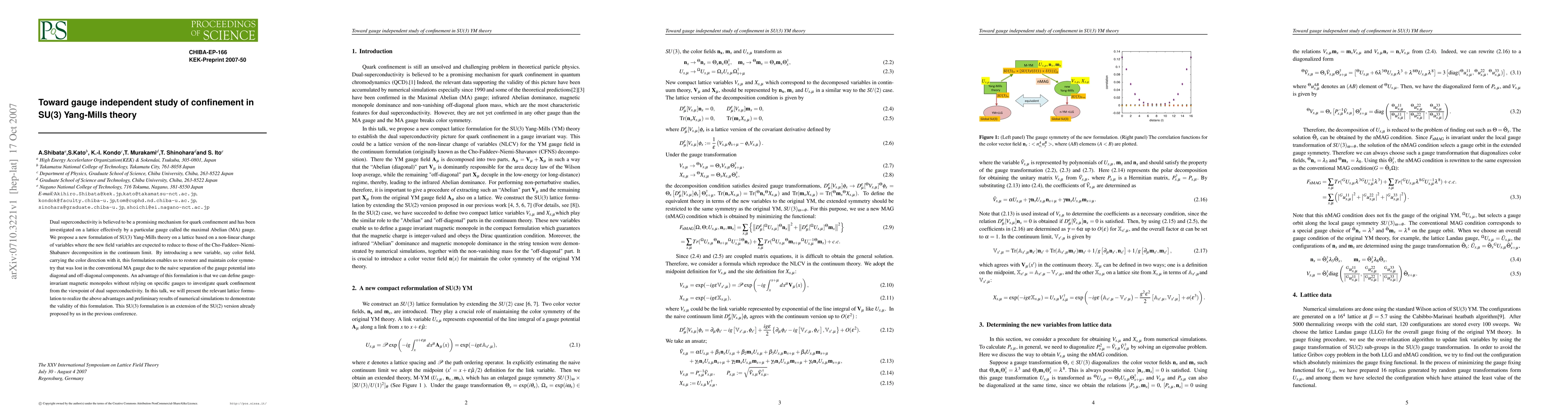 This paper proposes a new lattice formulation for SU(3) Yang-Mills theory that restores color symmetry and allows for gauge-independent study of quark confinement via dual superconductivity. Preliminary numerical simulations demonstrate the validity of this formulation.