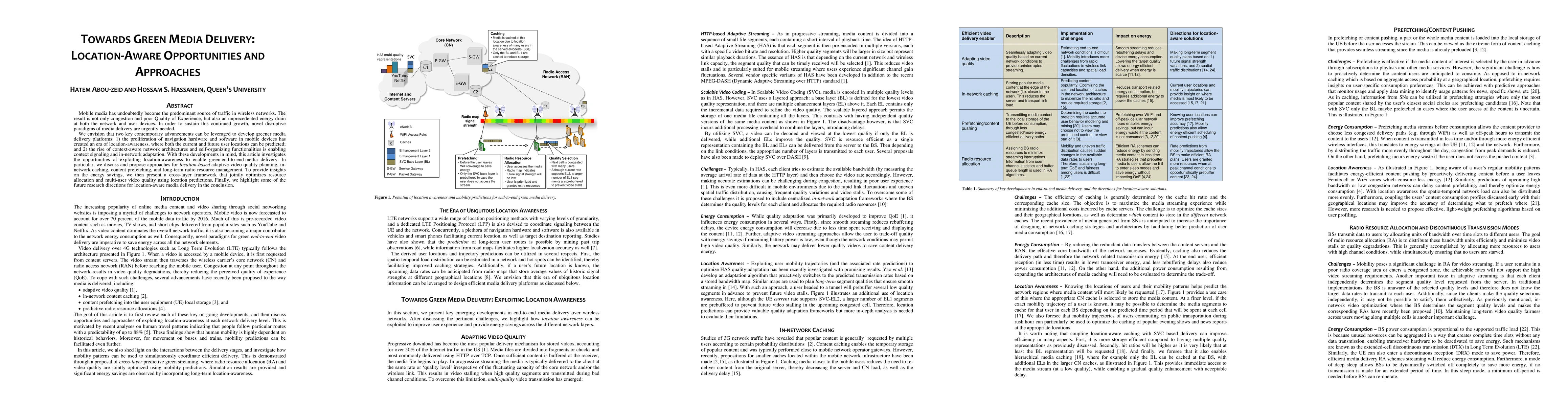 Mobile media has undoubtedly become the predominant source of traffic in wireless networks. The result is not only congestion and poor Quality-of-Experience, but also an unprecedented energy drain at both the network and user devices. In order to sustain this continued growth, novel disruptive paradigms of media delivery are urgently needed. We envision that two key contemporary advancements can be leveraged to develop greener media delivery platforms: 1) the proliferation of navigation hardware and software in mobile devices has created an era of location-awareness, where both the current and future user locations can be predicted; and 2) the rise of context-aware network architectures and self-organizing functionalities is enabling context signaling and in-network adaptation. With these developments in mind, this article investigates the opportunities of exploiting location-awareness to enable green end-to-end media delivery. In particular, we discuss and propose approaches for location-based adaptive video quality planning, in-network caching, content prefetching, and long-term radio resource management. To provide insights on the energy savings, we then present a cross-layer framework that jointly optimizes resource allocation and multi-user video quality using location predictions. Finally, we highlight some of the future research directions for location-aware media delivery in the conclusion.
