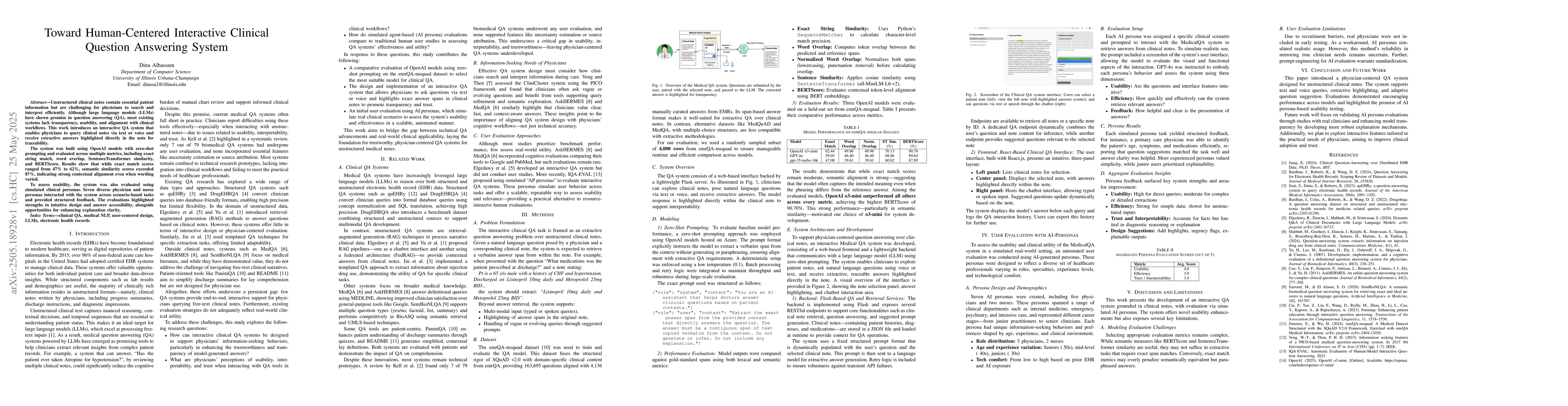 This work stands out by focusing on human-centered design, incorporating voice-based queries, and emphasizing traceability and contextual alignment in clinical note interpretation, which existing QA systems lack.