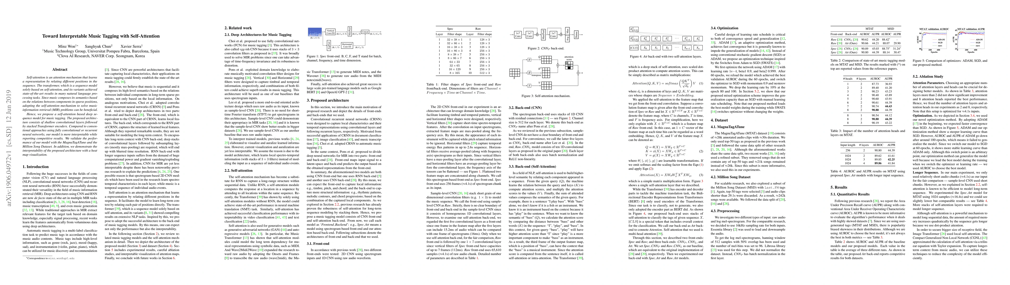 The paper proposes a self-attention based deep sequence model for music tagging, combining convolutional layers with Transformer encoders to achieve competitive results and improved interpretability compared to traditional methods. The model's interpretability is demonstrated via heat map visualizations.