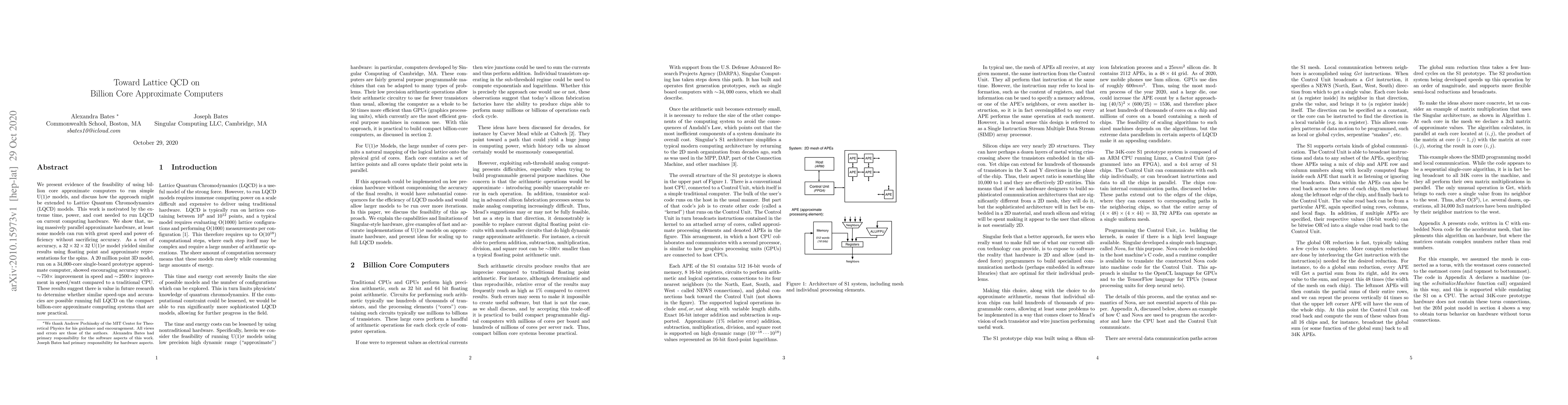 We present evidence of the feasibility of using billion core approximate computers to run simple U(1) sigma models, and discuss how the approach might be extended to Lattice Quantum Chromodynamics (LQCD) models. This work is motivated by the extreme time, power, and cost needed to run LQCD on current computing hardware. We show that, using massively parallel approximate hardware, at least some models can run with great speed and power efficiency without sacrificing accuracy. As a test of accuracy, a 32 x 32 x 32 U(1) sigma model yielded similar results using floating point and approximate representations for the spins. A 20 million point 3D model, run on a 34,000-core single-board prototype approximate computer, showed encouraging accuracy with a ~750 times improvement in speed and ~2500 times improvement in speed/watt compared to a traditional CPU. These results suggest there is value in future research to determine whether similar speed-ups and accuracies are possible running full LQCD on the compact billion-core approximate computing systems that are now practical.