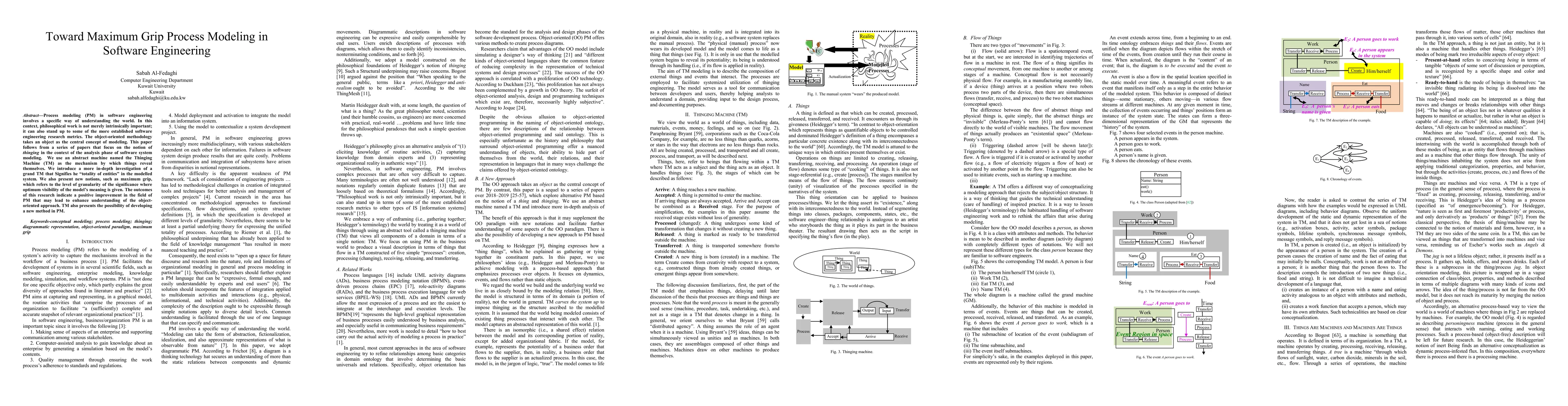 Process modeling (PM) in software engineering involves a specific way of understanding the world. In this context, philosophical work is not merely intrinsically important; it can also stand up to some of the more established software engineering research metrics. The object-oriented methodology takes an object as the central concept of modeling. This paper follows from a series of papers that focus on the notion of thinging in the context of the analysis phase of software system modeling. We use an abstract machine named the Thinging Machine (TM) as the mechanism by which things reveal themselves. We introduce a more in-depth investigation of a grand TM that Signifies the totality of entities in the modeled system. We also present new notions, such as maximum grip, which refers to the level of granularity of the significance where optimum visibility of the model s meaning is given. The outcomes of this research indicate a positive improvement in the field of PM that may lead to enhance understanding of the object-oriented approach. TM also presents the possibility of developing a new method in PM.