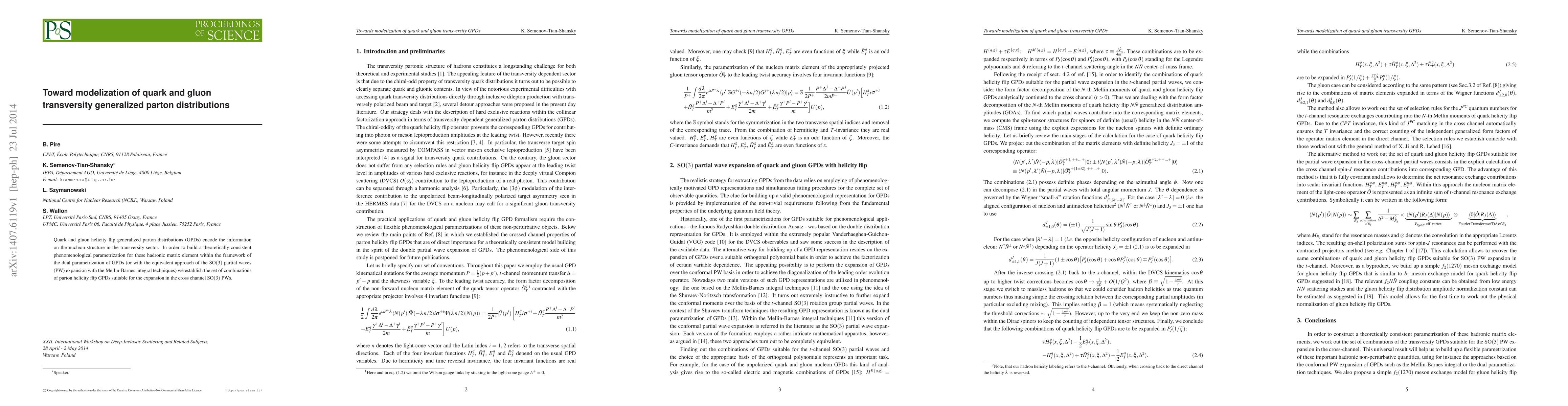 Quark and gluon helicity flip generalized parton distributions (GPDs) encode the information on the nucleon structure in the transversity sector. In order to build a theoretically consistent phenomenological parametrization for these hadronic matrix element within the framework of the dual parametrization of GPDs (or with the equivalent approach of the SO(3) partial waves (PW) expansion with the Mellin-Barnes integral techniques) we establish the set of combinations of parton helicity flip GPDs suitable for the expansion in the cross channel SO(3) PWs.