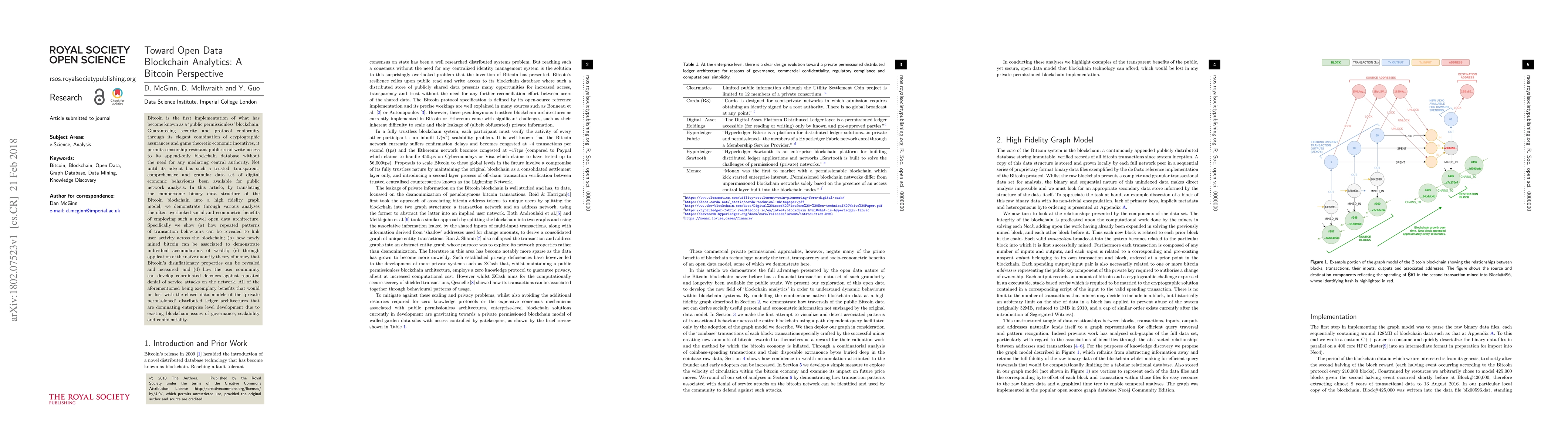 Bitcoin is the first implementation of what has become known as a 'public permissionless' blockchain. Guaranteeing security and protocol conformity through its elegant combination of cryptographic assurances and game theoretic economic incentives, it permits censorship resistant public read-write access to its append-only blockchain database without the need for any mediating central authority. Not until its advent has such a trusted, transparent, comprehensive and granular data set of digital economic behaviours been available for public network analysis. In this article, by translating the cumbersome binary data structure of the Bitcoin blockchain into a high fidelity graph model, we demonstrate through various analyses the often overlooked social and econometric benefits of employing such a novel open data architecture. Specifically we show (a) how repeated patterns of transaction behaviours can be revealed to link user activity across the blockchain; (b) how newly mined bitcoin can be associated to demonstrate individual accumulations of wealth; (c) through application of the naive quantity theory of money that Bitcoin's disinflationary properties can be revealed and measured; and (d) how the user community can develop coordinated defences against repeated denial of service attacks on the network. All of the aforementioned being exemplary benefits that would be lost with the closed data models of the 'private permissioned' distributed ledger architectures that are dominating enterprise level development due to existing blockchain issues of governance, scalability and confidentiality.