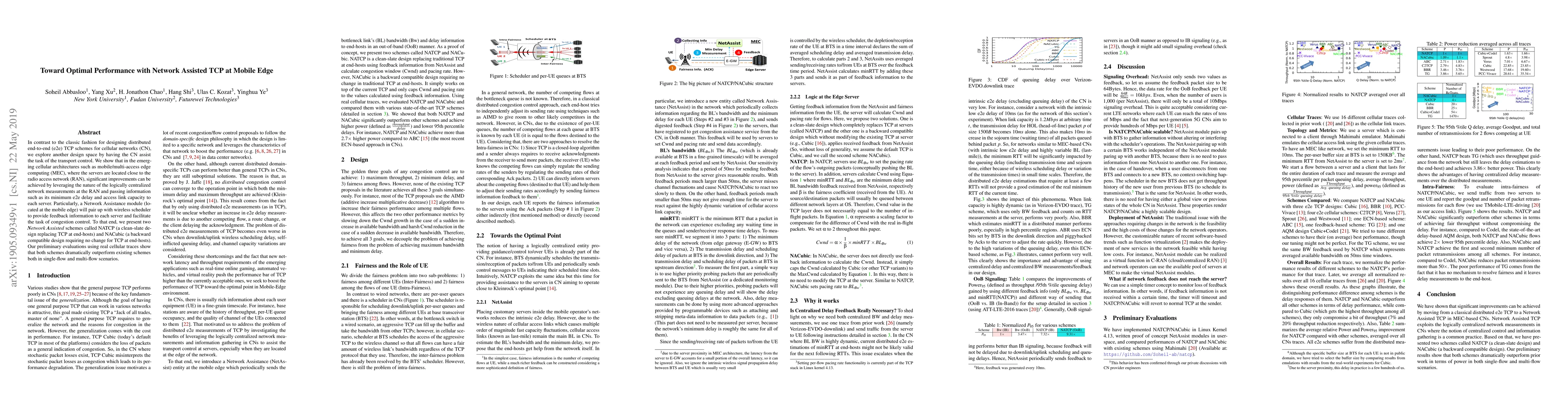 This paper explores network-assisted TCP schemes for cellular networks, proposing two new designs, NATCP and NACubic, that leverage mobile edge computing to improve performance. Initial evaluations using real cellular data show significant improvements over existing methods in both single-flow and multi-flow scenarios.
