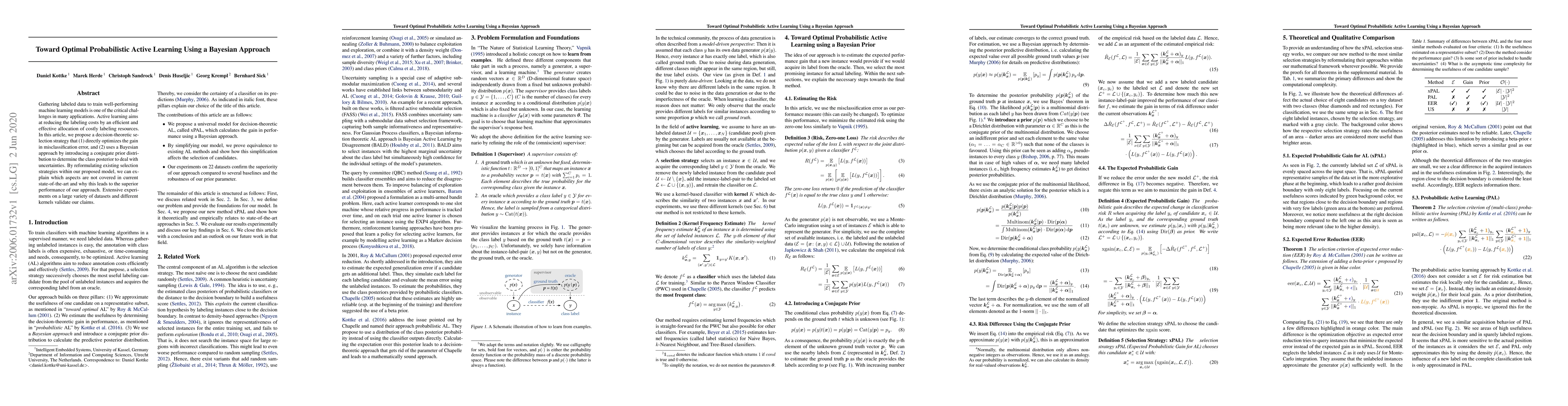 Gathering labeled data to train well-performing machine learning models is one of the critical challenges in many applications. Active learning aims at reducing the labeling costs by an efficient and effective allocation of costly labeling resources. In this article, we propose a decision-theoretic selection strategy that (1) directly optimizes the gain in misclassification error, and (2) uses a Bayesian approach by introducing a conjugate prior distribution to determine the class posterior to deal with uncertainties. By reformulating existing selection strategies within our proposed model, we can explain which aspects are not covered in current state-of-the-art and why this leads to the superior performance of our approach. Extensive experiments on a large variety of datasets and different kernels validate our claims.
