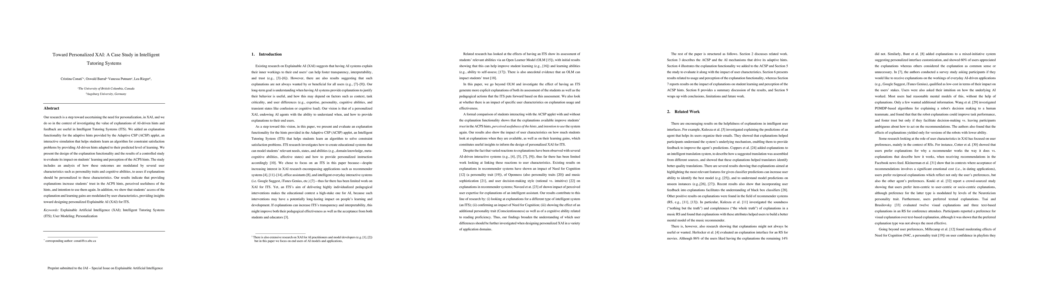 This research investigates the value of personalized explanations in AI-driven hints within Intelligent Tutoring Systems, finding that explanations enhance students' trust and perceived usefulness of the hints. The study reveals that user characteristics like personality traits and cognitive abilities influence the effectiveness of these explanations, suggesting a need for personalized Explainable AI in educational contexts.