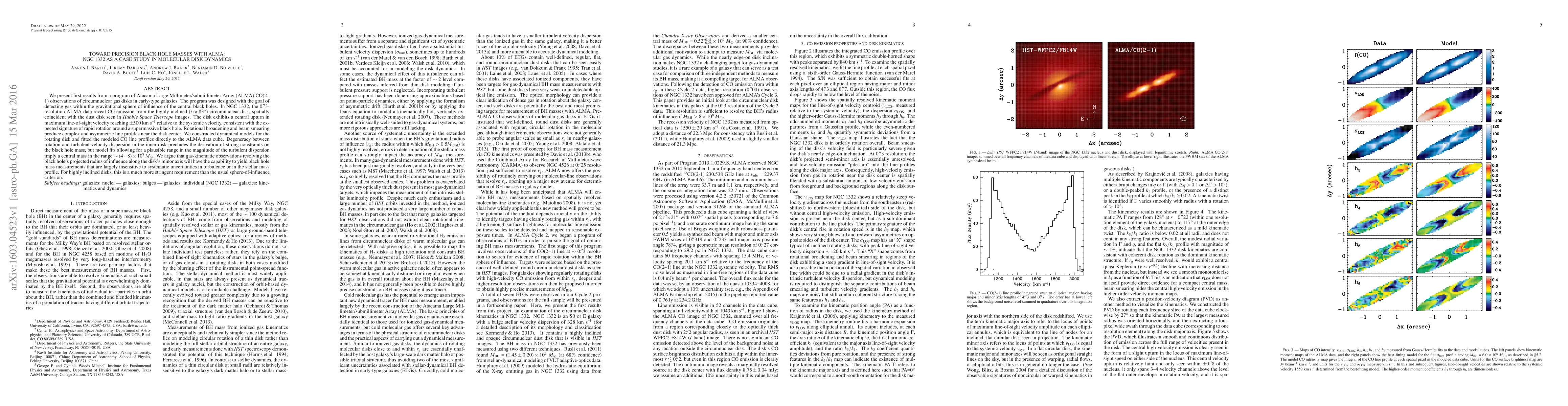 Using ALMA's high-resolution observations of a galaxy's central gas disk, the study aims to measure black hole masses accurately. While current data suggest a black hole mass of roughly 400-800 million solar masses, resolving the black hole's influence along the disk's minor axis is key for more precise measurements.