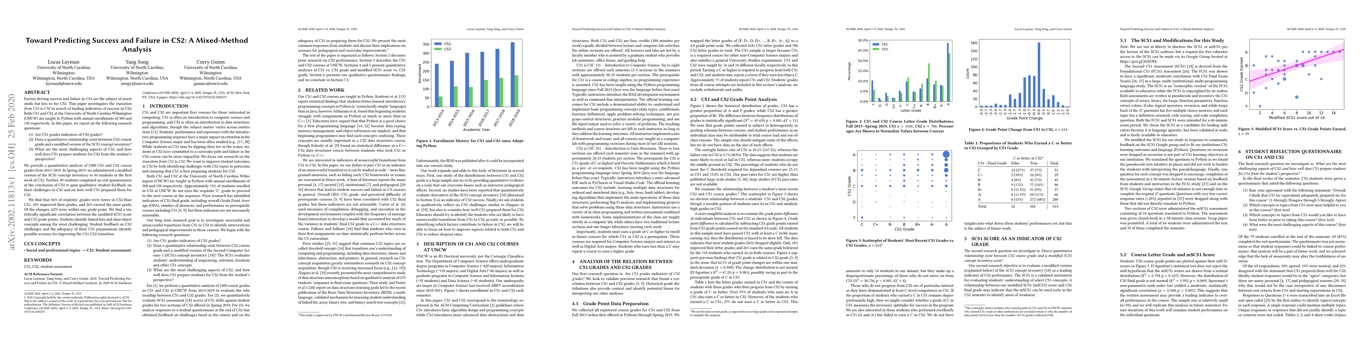 A study of 2300 students found that many struggled with a transition from introductory CS1 to more challenging CS2, with key difficulties including linked lists and class/object concepts. The results suggest that improving the CS1-CS2 transition could lead to better student outcomes in CS2.