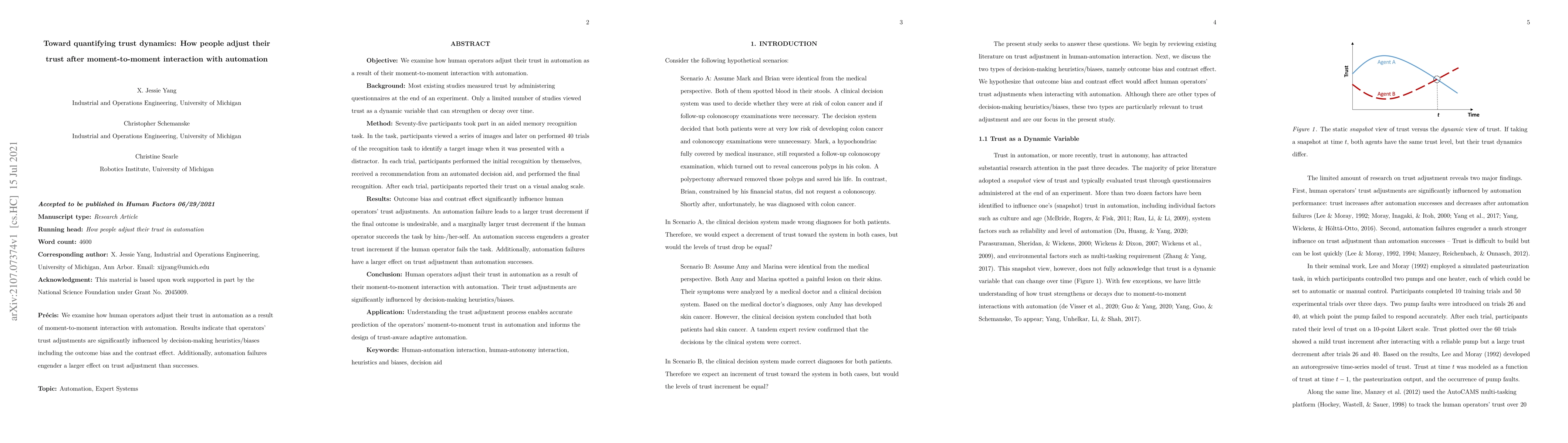 This study investigates how human operators dynamically adjust their trust in automation during real-time interactions, finding that outcome bias and contrast effects significantly influence trust adjustments. The results show that trust decreases more after automation failures, especially if the outcome is undesirable, and increases more when operators fail after automation successes.