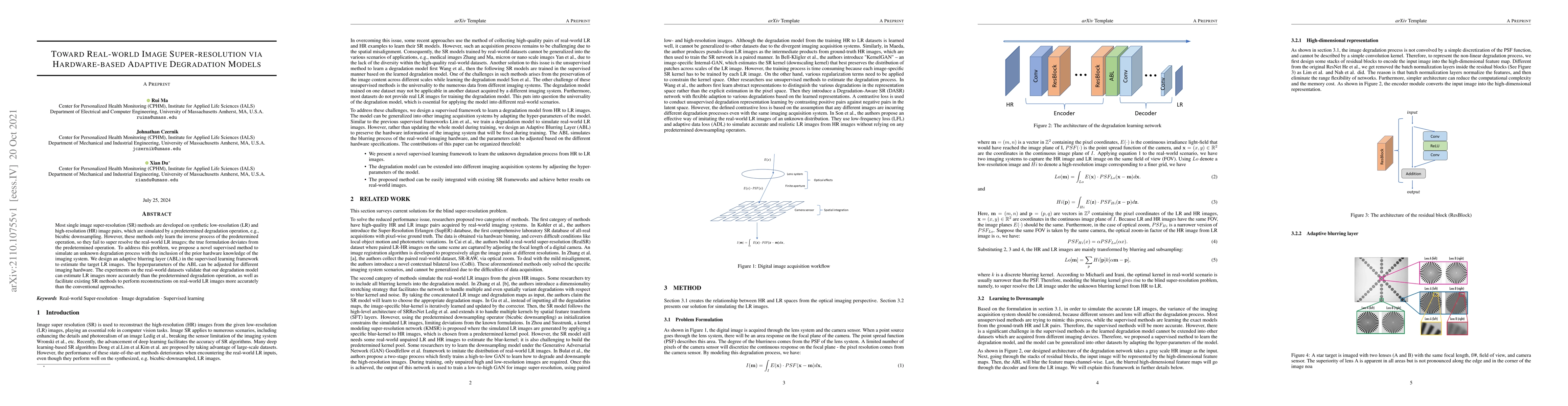 This paper proposes a supervised method to simulate unknown degradation processes in real-world images using hardware knowledge, introducing an adaptive blurring layer (ABL) to estimate low-resolution images. Experiments show that this approach outperforms conventional methods in reconstructing real-world images.