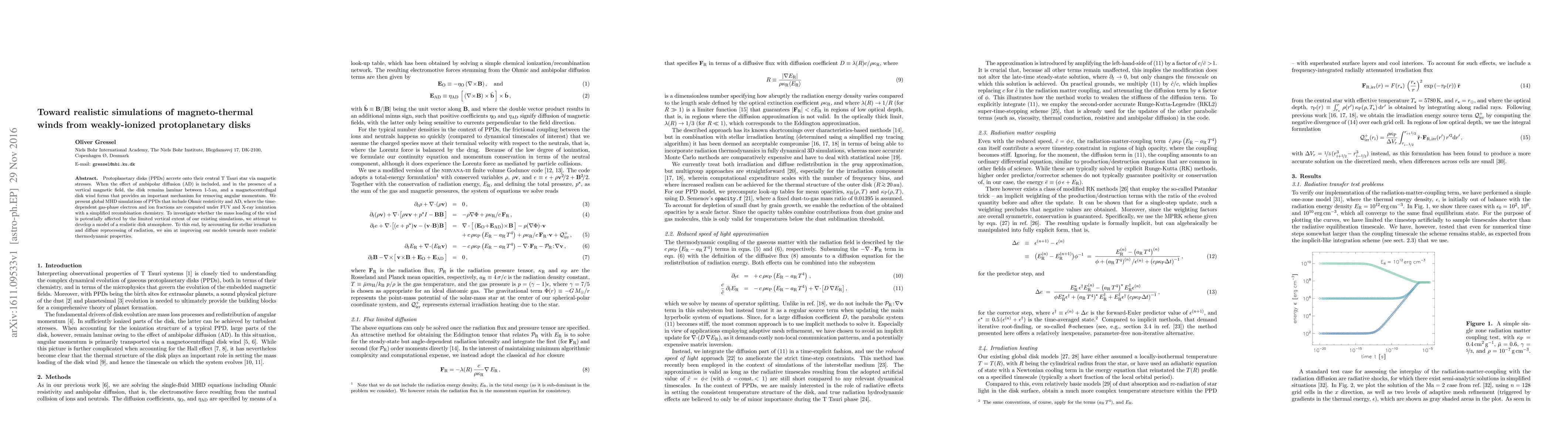 Protoplanetary disks (PPDs) accrete onto their central T Tauri star via magnetic stresses. When the effect of ambipolar diffusion (AD) is included, and in the presence of a vertical magnetic field, the disk remains laminar between 1-5 au, and a magnetocentrifugal disk wind forms that provides an important mechanism for removing angular momentum. We present global MHD simulations of PPDs that include Ohmic resistivity and AD, where the time-dependent gas-phase electron and ion fractions are computed under FUV and X-ray ionization with a simplified recombination chemistry. To investigate whether the mass loading of the wind is potentially affected by the limited vertical extent of our existing simulations, we attempt to develop a model of a realistic disk atmosphere. To this end, by accounting for stellar irradiation and diffuse reprocessing of radiation, we aim at improving our models towards more realistic thermodynamic properties.