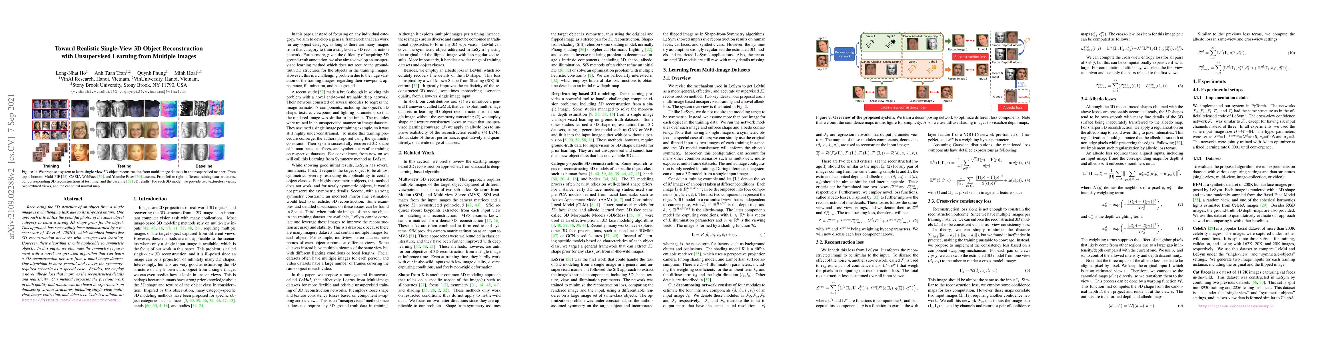 This paper proposes an unsupervised learning algorithm to reconstruct 3D objects from a single image, eliminating the need for symmetrical objects. The method improves upon previous work by incorporating a novel albedo loss, achieving higher quality and robustness in reconstructions across diverse datasets.
