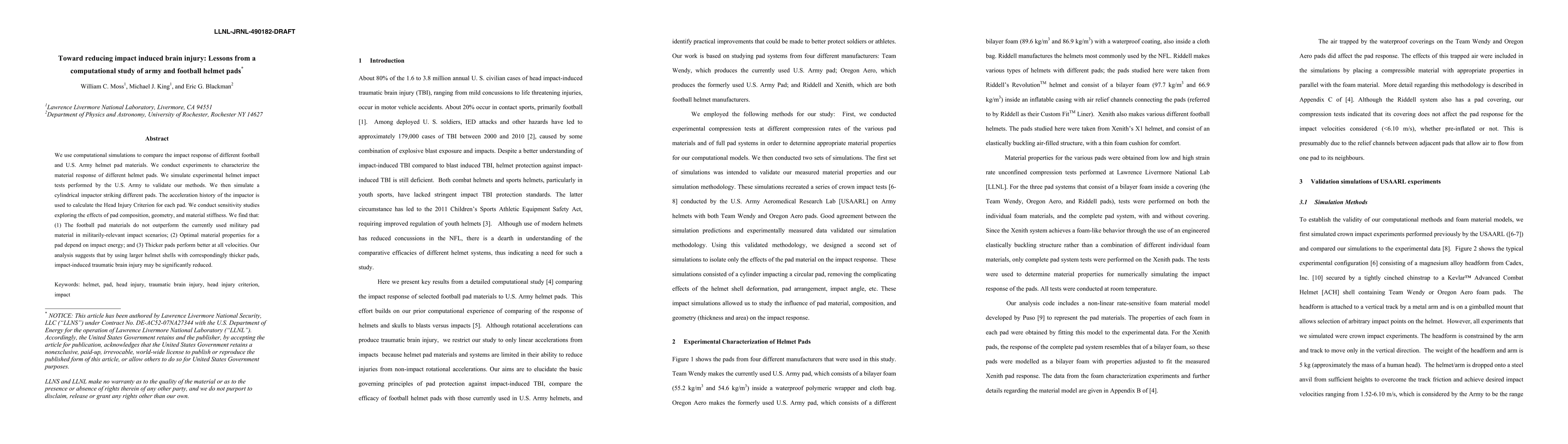 This study uses computational simulations to evaluate the impact response of various football and Army helmet pads, finding that military pads are as effective as football pads in military scenarios. The research suggests that thicker pads and larger helmet shells could significantly reduce impact-induced traumatic brain injury.