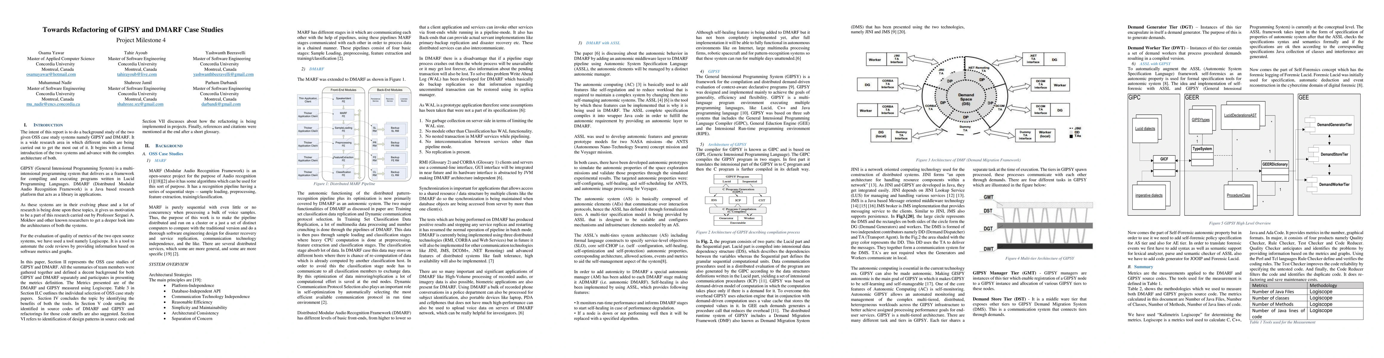 The intent of this report is to do a background study of the two given OSS case study systems namely GIPSY and DMARF. It is a wide research area in which different studies are being carried out to get the most out of it. It begins with a formal introduction of the two systems and advance with the complex architecture of both. GIPSY (General Intensional Programming System) is a multi-intensional programming system that delivers as a framework for compiling and executing programs written in Lucid Programming Languages. DMARF (Distributed Modular Audio Recognition Framework) is a Java based research platform that acts as a library in applications. As these systems are in their evolving phase and a lot of research is being done upon these topics, it gives us motivation to be a part of this research to get a deeper look into the architectures of both the systems. For the evaluation of quality of metrics of the two open source systems, we have used a tool namely Logiscope. It is a tool to automate the code reviews by providing information based on software metrics and graphs.