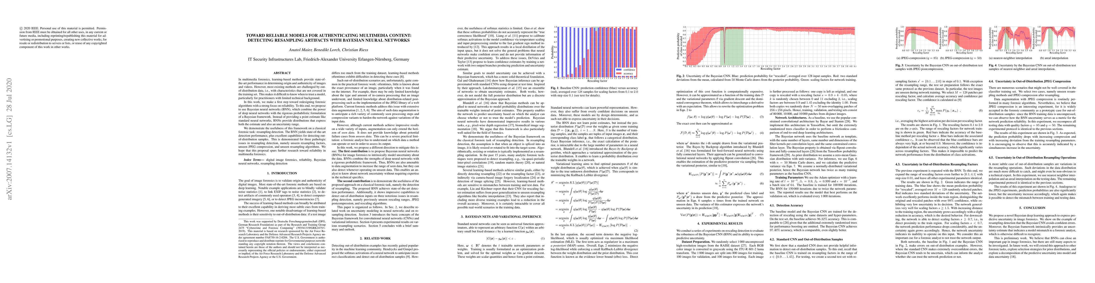 In multimedia forensics, learning-based methods provide state-of-the-art performance in determining origin and authenticity of images and videos. However, most existing methods are challenged by out-of-distribution data, i.e., with characteristics that are not covered in the training set. This makes it difficult to know when to trust a model, particularly for practitioners with limited technical background. In this work, we make a first step toward redesigning forensic algorithms with a strong focus on reliability. To this end, we propose to use Bayesian neural networks (BNN), which combine the power of deep neural networks with the rigorous probabilistic formulation of a Bayesian framework. Instead of providing a point estimate like standard neural networks, BNNs provide distributions that express both the estimate and also an uncertainty range. We demonstrate the usefulness of this framework on a classical forensic task: resampling detection. The BNN yields state-of-the-art detection performance, plus excellent capabilities for detecting out-of-distribution samples. This is demonstrated for three pathologic issues in resampling detection, namely unseen resampling factors, unseen JPEG compression, and unseen resampling algorithms. We hope that this proposal spurs further research toward reliability in multimedia forensics.