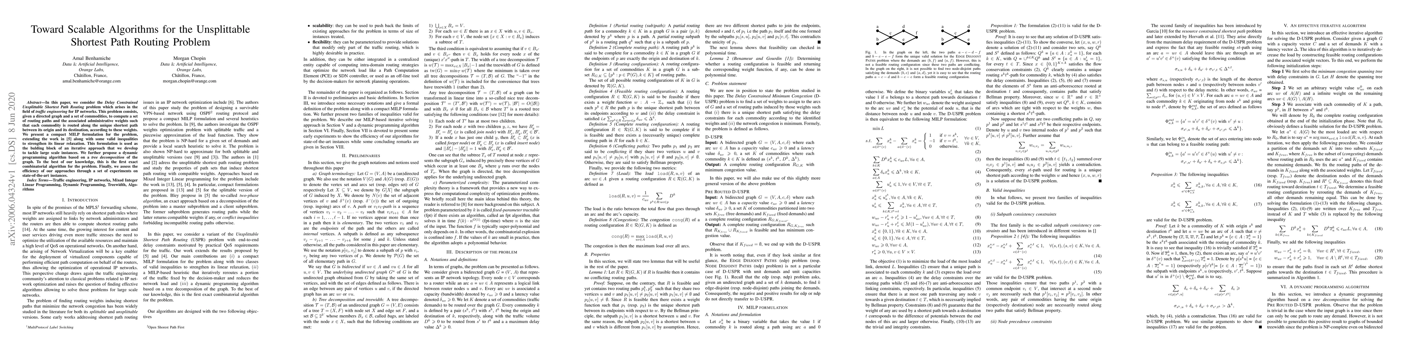 This paper presents a scalable MILP formulation and an iterative approach for solving the Delay Constrained Unsplittable Shortest Path Routing problem in IP networks, along with a novel dynamic programming algorithm for large-scale instances. Experimental results demonstrate the efficiency of the proposed methods.