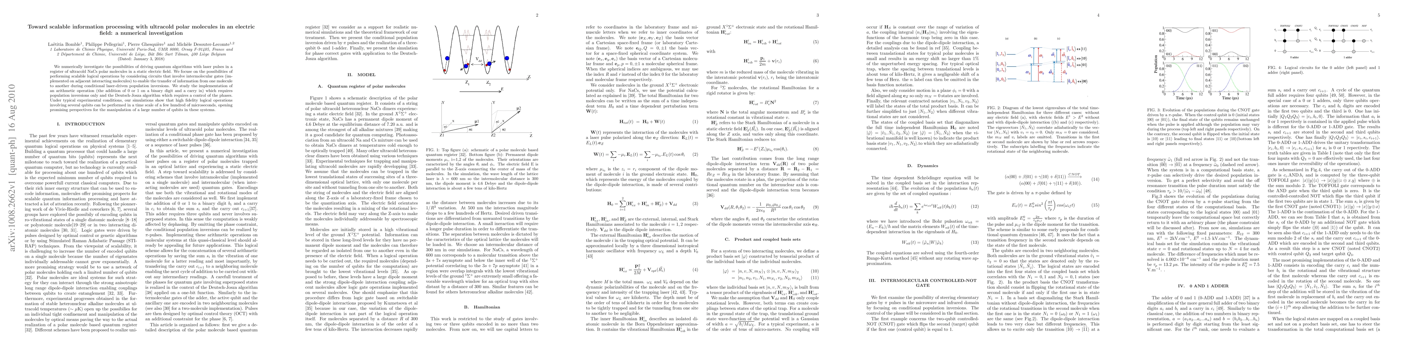 This paper numerically explores the feasibility of using ultracold NaCs polar molecules in an electric field to implement scalable quantum algorithms via laser pulses. The study demonstrates the potential for high fidelity logical operations, including arithmetic addition and the Deutsch-Josza algorithm, within microsecond timescales, indicating promising prospects for large-scale quantum information processing.