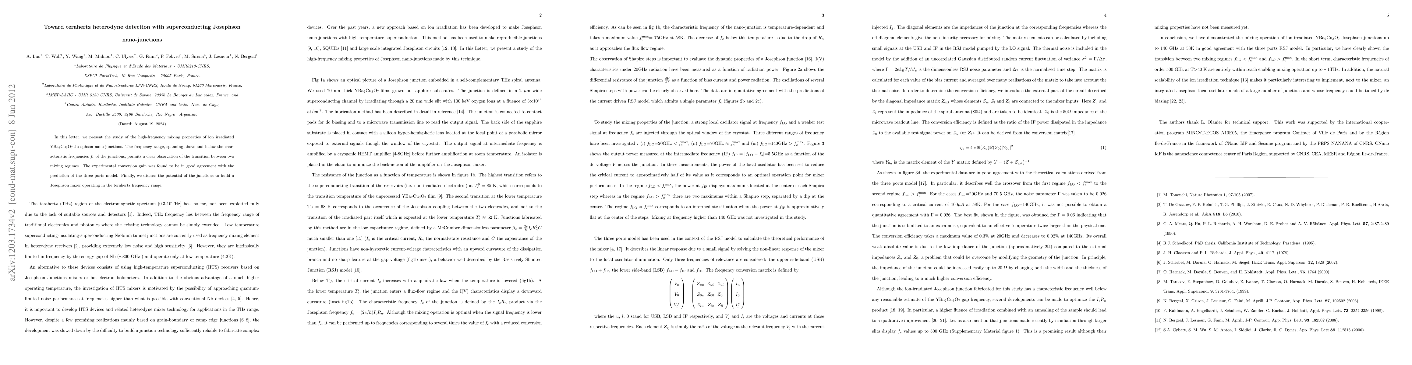 This paper investigates the high-frequency mixing capabilities of ion-irradiated YBa2Cu3O7 Josephson nano-junctions, observing the transition between two mixing regimes and validating the three ports model's predictions. The study highlights the potential of these junctions for constructing a terahertz frequency range Josephson mixer.