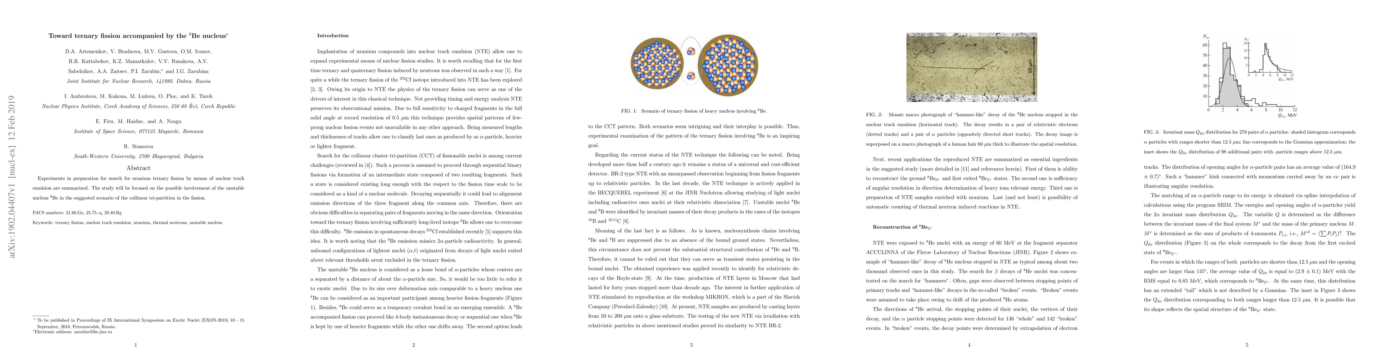 Experiments in preparation for search for uranium ternary fission by means of nuclear track emulsion are summarized. The study will be focused on the possible involvement of the unstable nucleus ${}^{8}$Be in the suggested scenario of the collinear tri-partition in the fission.