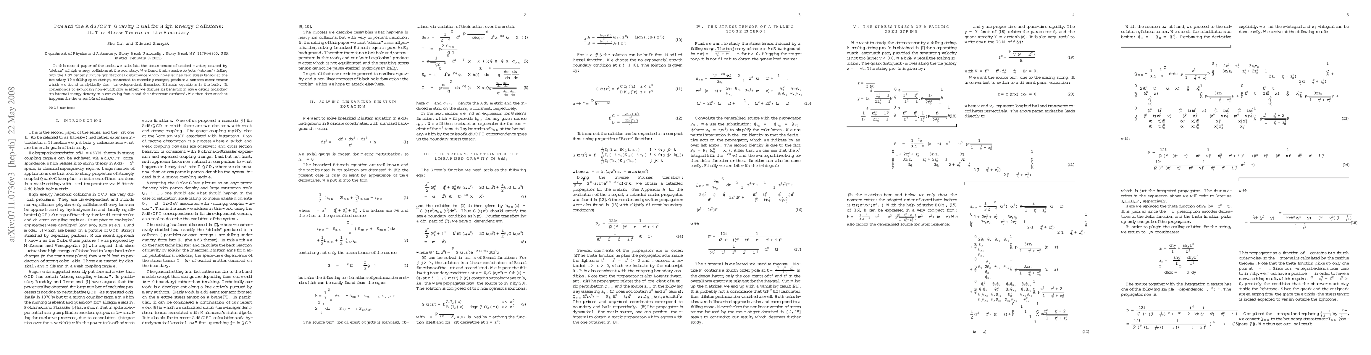 In this second paper of the series we calculate the stress tensor of excited matter, created by ``debris'' of high energy collisions at the boundary. We found that massive objects (``stones'') falling into the AdS center produce gravitational disturbance which however has $zero$ stress tensor at the boundary. The falling open strings, connected to receeding charges, do produce a nonzero stress tensor which we found analytically from time-dependent linearized Einstein equations in the bulk. It corresponds to exploding non-equilibrium matter: we discuss its behavior in some detail, including its internal energy density in a comoving frame and the ``freezeout surfaces''. We then discuss what happens for the ensemble of strings.