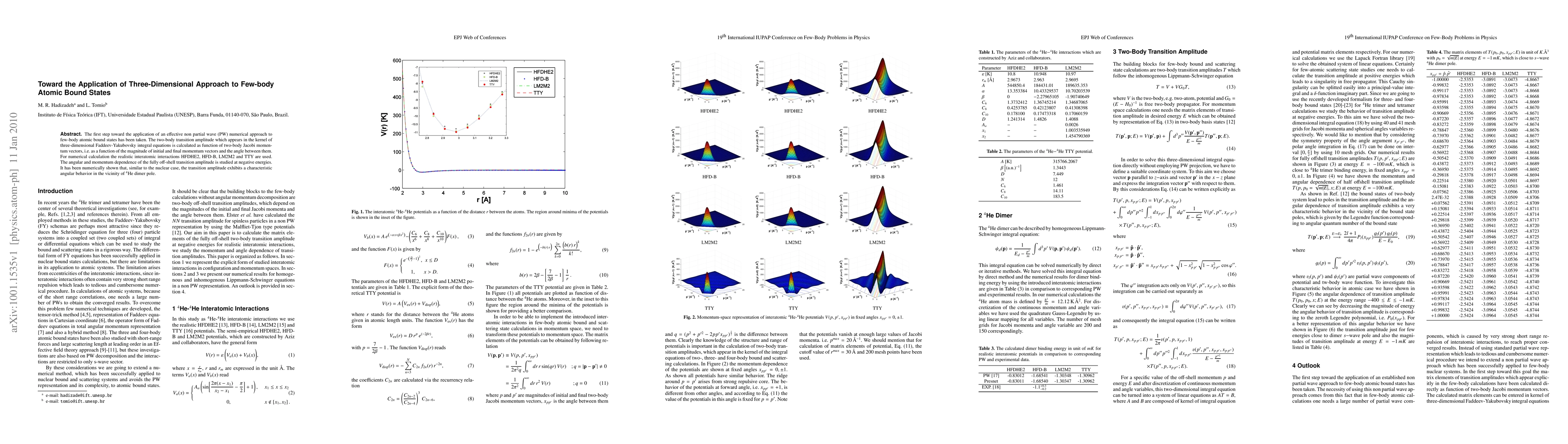 The first step toward the application of an effective non partial wave (PW) numerical approach to few-body atomic bound states has been taken. The two-body transition amplitude which appears in the kernel of three-dimensional Faddeev-Yakubovsky integral equations is calculated as function of two-body Jacobi momentum vectors, i.e. as a function of the magnitude of initial and final momentum vectors and the angle between them. For numerical calculation the realistic interatomic interactions HFDHE2, HFD-B, LM2M2 and TTY are used. The angular and momentum dependence of the fully off-shell transition amplitude is studied at negative energies. It has been numerically shown that, similar to the nuclear case, the transition amplitude exhibits a characteristic angular behavior in the vicinity of 4He dimer pole.