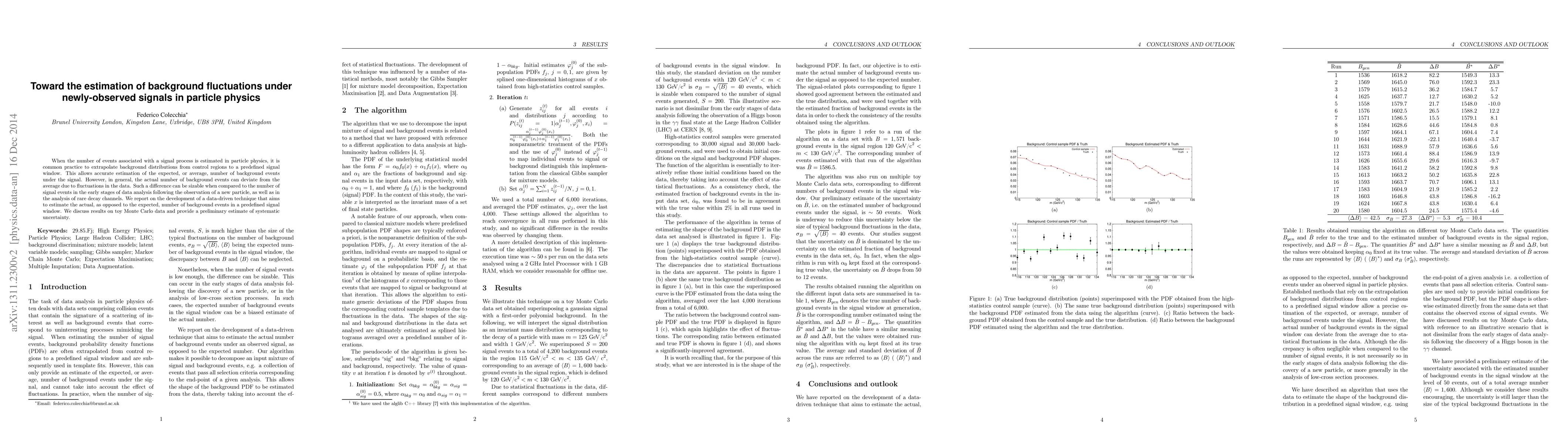 When the number of events associated with a signal process is estimated in particle physics, it is common practice to extrapolate background distributions from control regions to a predefined signal window. This allows accurate estimation of the expected, or average, number of background events under the signal. However, in general, the actual number of background events can deviate from the average due to fluctuations in the data. Such a difference can be sizable when compared to the number of signal events in the early stages of data analysis following the observation of a new particle, as well as in the analysis of rare decay channels. We report on the development of a data-driven technique that aims to estimate the actual, as opposed to the expected, number of background events in a predefined signal window. We discuss results on toy Monte Carlo data and provide a preliminary estimate of systematic uncertainty.