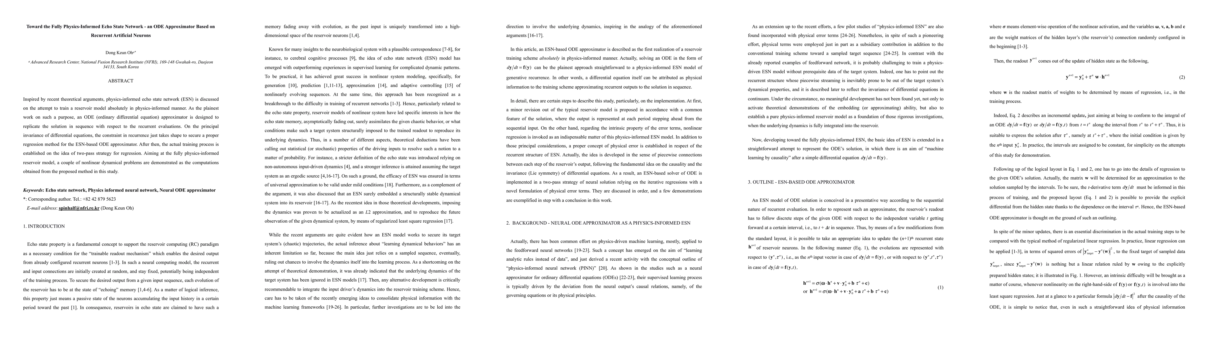 This paper proposes a physics-informed echo state network (ESN) for training an ODE approximator based on recurrent artificial neurons, aiming to replicate solutions in sequence. The training process employs a two-pass strategy for regression, demonstrating the method's effectiveness on nonlinear dynamical problems.