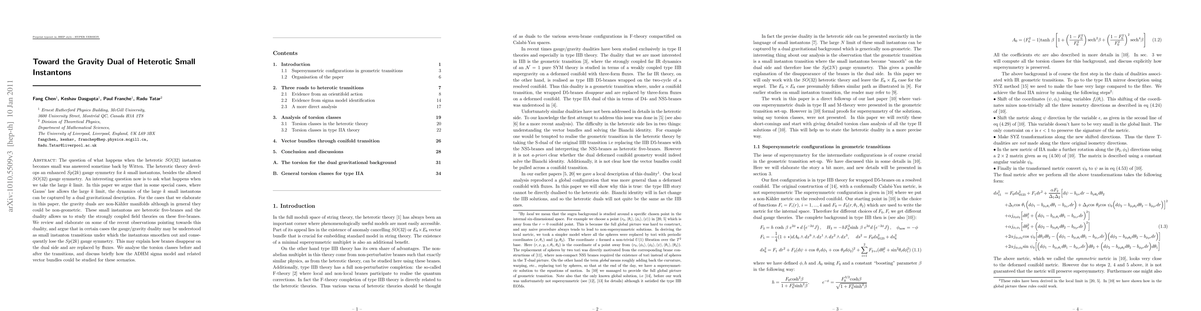 This paper explores the gravitational dual of heterotic small instantons, particularly focusing on the dynamics of large k small instantons. It argues that in specific cases, the dynamics can be described by a dual gravitational theory involving non-Kahler manifolds, allowing study of strongly coupled field theories on heterotic five-branes.