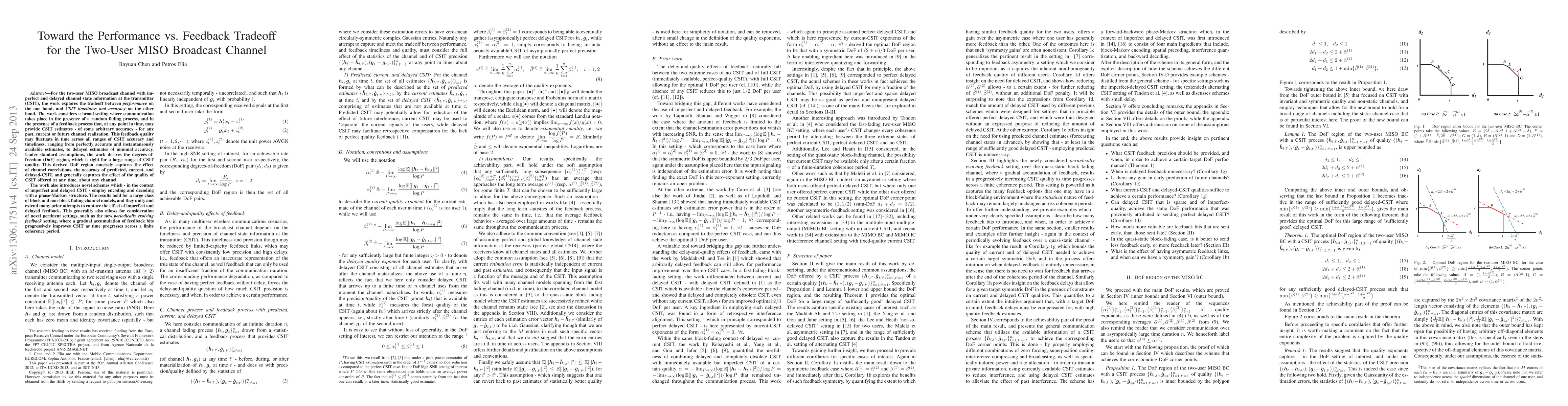For the two-user MISO broadcast channel with imperfect and delayed channel state information at the transmitter (CSIT), the work explores the tradeoff between performance on the one hand, and CSIT timeliness and accuracy on the other hand. The work considers a broad setting where communication takes place in the presence of a random fading process, and in the presence of a feedback process that, at any point in time, may provide CSIT estimates - of some arbitrary accuracy - for any past, current or future channel realization. This feedback quality may fluctuate in time across all ranges of CSIT accuracy and timeliness, ranging from perfectly accurate and instantaneously available estimates, to delayed estimates of minimal accuracy. Under standard assumptions, the work derives the degrees-of-freedom (DoF) region, which is tight for a large range of CSIT quality. This derived DoF region concisely captures the effect of channel correlations, the accuracy of predicted, current, and delayed-CSIT, and generally captures the effect of the quality of CSIT offered at any time, about any channel. The work also introduces novel schemes which - in the context of imperfect and delayed CSIT - employ encoding and decoding with a phase-Markov structure. The results hold for a large class of block and non-block fading channel models, and they unify and extend many prior attempts to capture the effect of imperfect and delayed feedback. This generality also allows for consideration of novel pertinent settings, such as the new periodically evolving feedback setting, where a gradual accumulation of feedback bits progressively improves CSIT as time progresses across a finite coherence period.