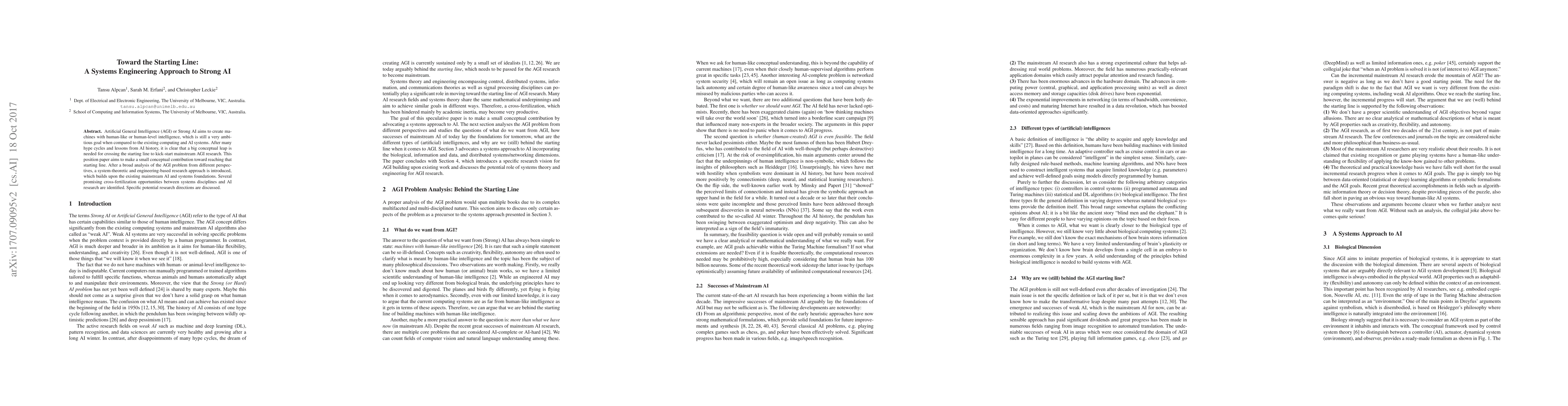 Artificial General Intelligence (AGI) or Strong AI aims to create machines with human-like or human-level intelligence, which is still a very ambitious goal when compared to the existing computing and AI systems. After many hype cycles and lessons from AI history, it is clear that a big conceptual leap is needed for crossing the starting line to kick-start mainstream AGI research. This position paper aims to make a small conceptual contribution toward reaching that starting line. After a broad analysis of the AGI problem from different perspectives, a system-theoretic and engineering-based research approach is introduced, which builds upon the existing mainstream AI and systems foundations. Several promising cross-fertilization opportunities between systems disciplines and AI research are identified. Specific potential research directions are discussed.