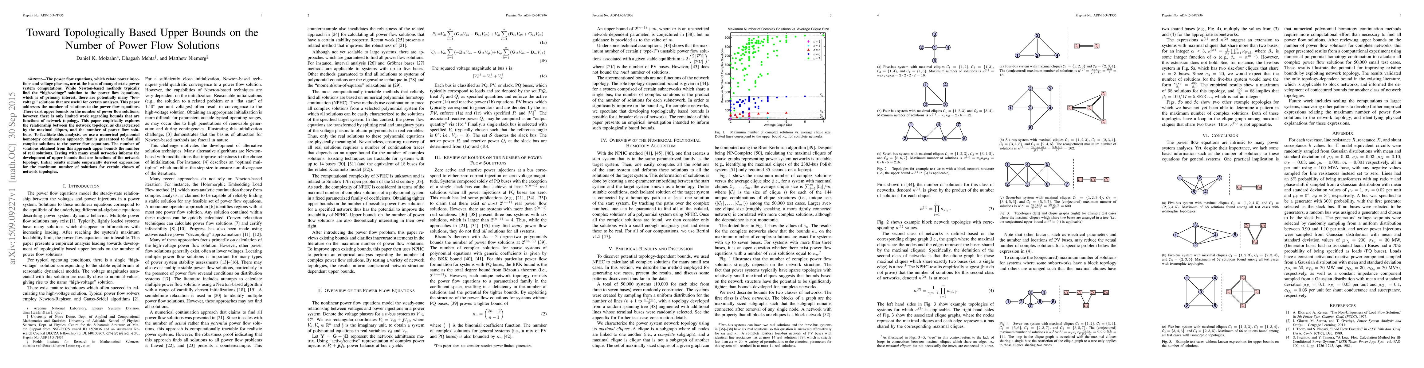This paper investigates the relationship between network topology and the number of power flow solutions, using maximal cliques to characterize topology. It employs a numerical homotopy continuation method to find all complex solutions, which empirically informs the development of topologically based upper bounds on the number of real power flow solutions.