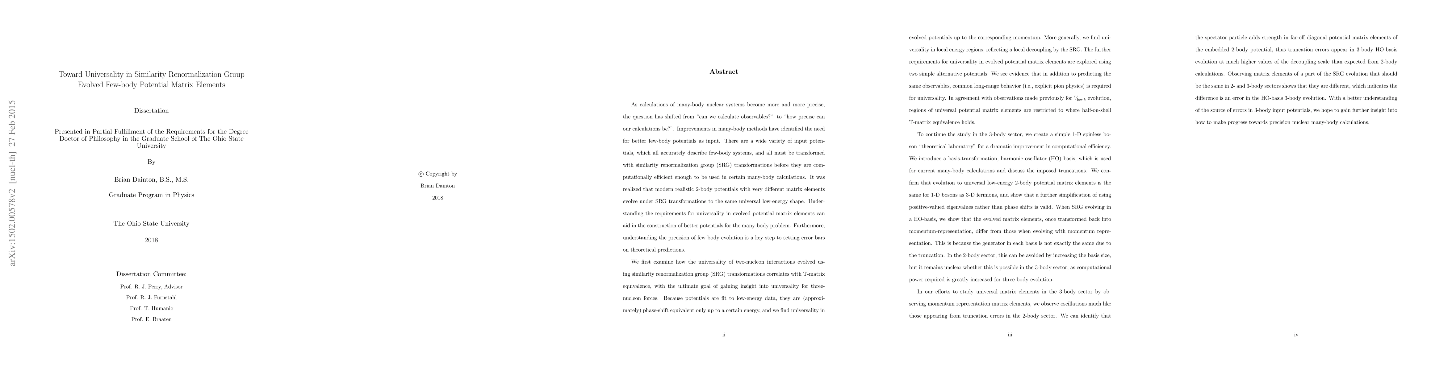 We first examine how T-matrix equivalence drives the flow of similarity renormalization group (SRG) evolved potential matrix elements to a universal form, with the ultimate goal of gaining insight into universality for three-nucleon forces. In agreement with observations made previously for Lee-Suzuki transformations, regions of universal potential matrix elements are restricted to where half-on-shell T-matrix equivalence holds, but the potentials must also reproduce binding energies. We find universality in local energy regions, reflecting a local decoupling by the SRG. To continue the study in the 3-body sector, we create a simple 1-D spinless boson "theoretical laboratory" for a dramatic improvement in computational efficiency. We introduce a basis-transformation, harmonic oscillator (HO) basis, which is used for current many-body calculations and discuss the imposed truncations. When SRG evolving in a HO-basis, we show that the evolved matrix elements, once transformed back into momentum-representation, differ from those when evolving with momentum representation. This is because the generator in each basis is not exactly the same due to the truncation, which creates evolution artifacts in the 3-body potential matrix elements. In the 2- body sector, this can be avoided by increasing the basis size, but it remains unclear whether this is possible in the 3-body sector, as truncation errors in the 3-body sector are more difficult to avoid, and the computational power required is greatly increased for three-body evolution.