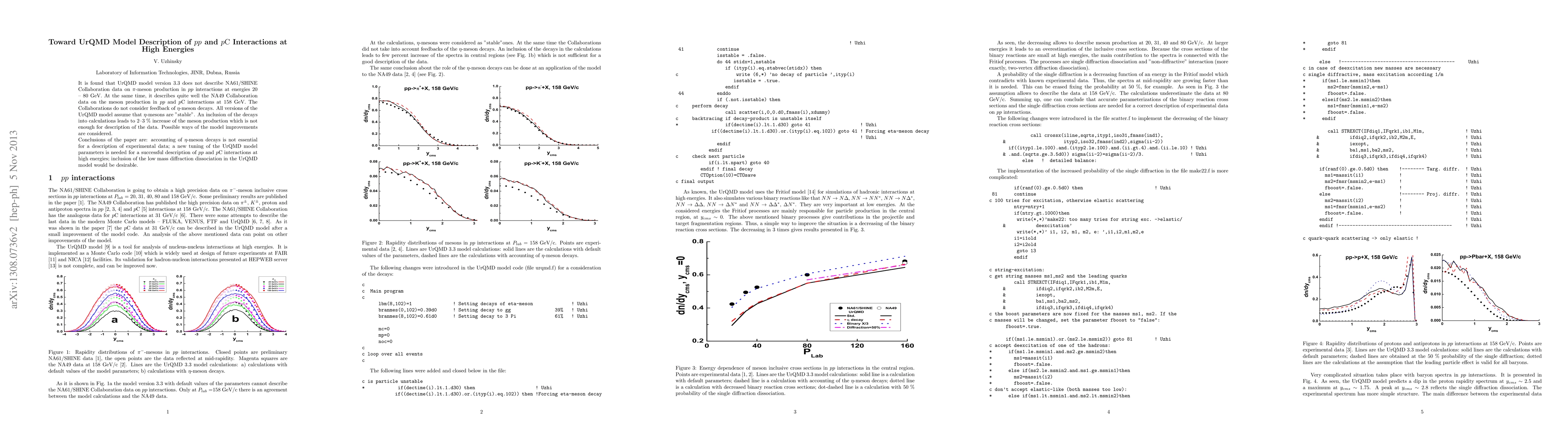 It is found that UrQMD model version 3.3 does not describe NA61/SHINE Collaboration data on \pi-meson production in pp interactions at energies 20 - 80 GeV. At the same time, it describes quite well the NA49 Collaboration data on the meson production in pp and pC interactions at 158 GeV. The Collaborations do not consider feedback of \eta-meson decays. All versions of the UrQMD model assume that \eta-mesons are "stable". An inclusion of the decays into calculations leads to 2--3 % increase of the meson production which is not enough for description of the data. Possible ways of the model improvements are considered. Conclusions of the paper are: accounting of \eta-meson decays is not essential for a description of experimental data; a new tuning of the UrQMD model parameters is needed for a successful description of pp and pC interactions at high energies; inclusion of the low mass diffraction dissociation in the UrQMD model would be desirable.